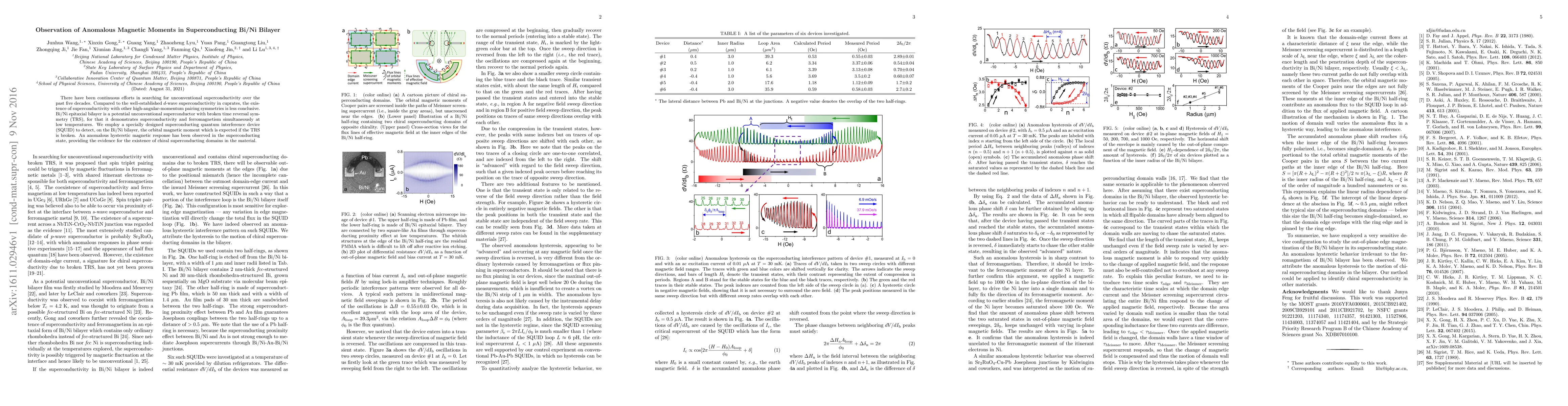 Researchers observed anomalous magnetic moments in a superconducting Bi/Ni bilayer, indicating chiral superconducting domains with broken time reversal symmetry. This finding suggests the existence of unconventional superconductivity with high-angular-momentum pairing symmetries.