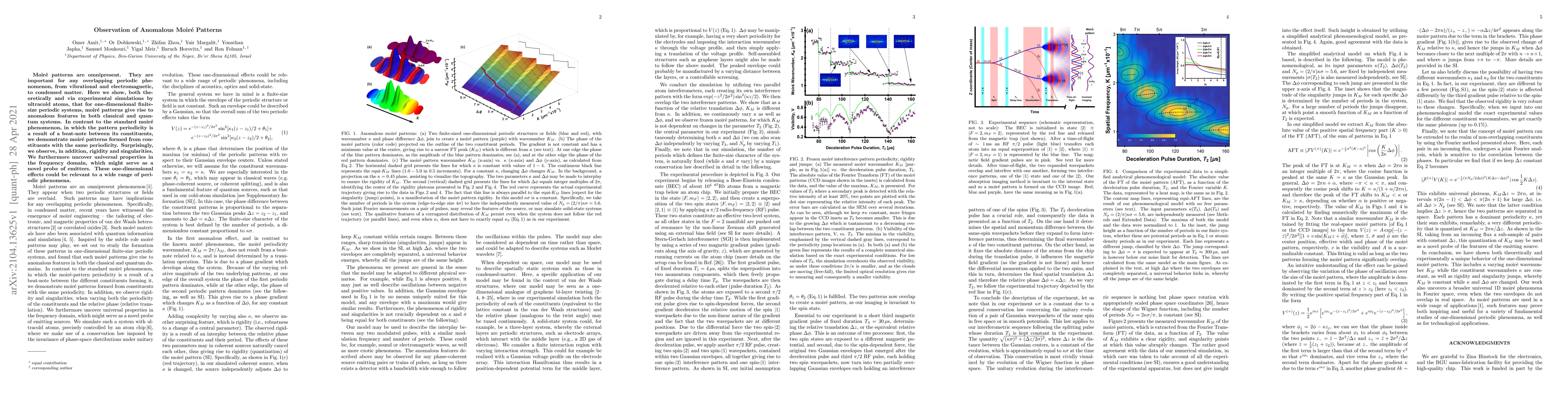 Moir\'e patterns are omnipresent. They are important for any overlapping periodic phenomenon, from vibrational and electromagnetic, to condensed matter. Here we show, both theoretically and via experimental simulations by ultracold atoms, that for one-dimensional finite-size periodic systems, moir\'e patterns give rise to anomalous features in both classical and quantum systems. In contrast to the standard moir\'e phenomenon, in which the pattern periodicity is a result of a beat-note between its constituents, we demonstrate moir\'e patterns formed from constituents with the same periodicity. Surprisingly, we observe, in addition, rigidity and singularities. We furthermore uncover universal properties in the frequency domain, which might serve as a novel probe of emitters. These one-dimensional effects could be relevant to a wide range of periodic phenomena.