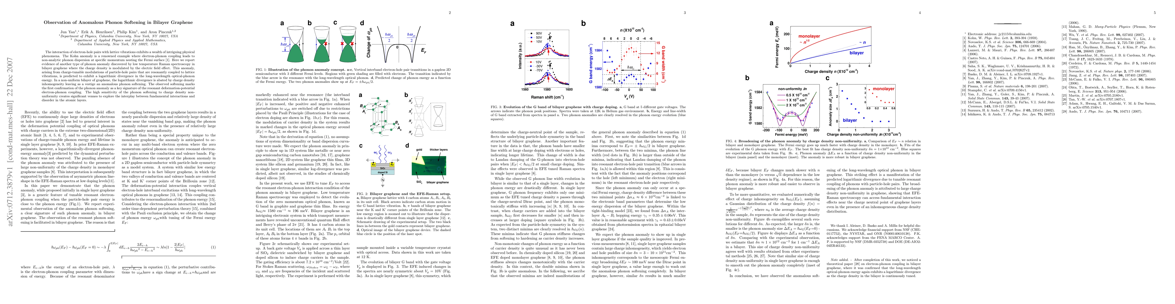 The study observes anomalous phonon softening in bilayer graphene via low-temperature Raman spectroscopy, revealing the effect of charge density modulation by electric fields, and confirming the existence of a phonon anomaly linked to resonant deformation-potential electron-phonon coupling. The findings highlight the sensitivity of phonon softening to charge density non-uniformity, offering insights into fundamental interactions and disorder in atomic layers.