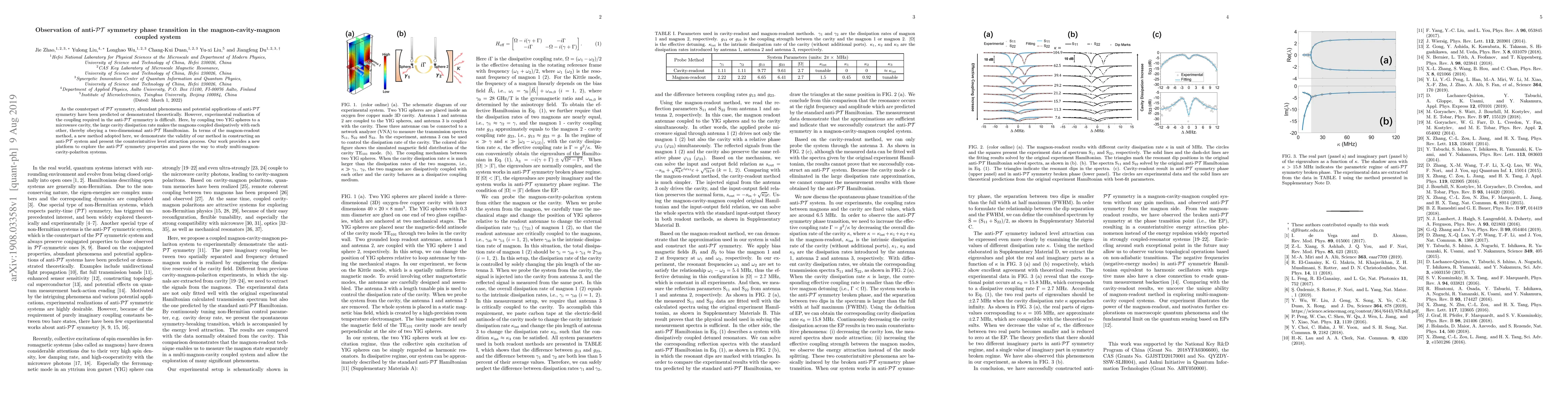 This paper demonstrates the experimental realization of an anti-PT symmetry phase transition in a magnon-cavity-magnon coupled system using two YIG spheres connected to a microwave cavity. The study employs a magnon-readout method to observe the counterintuitive level attraction process, providing a new platform for exploring anti-PT symmetry properties and multi-magnon-cavity-polariton systems.