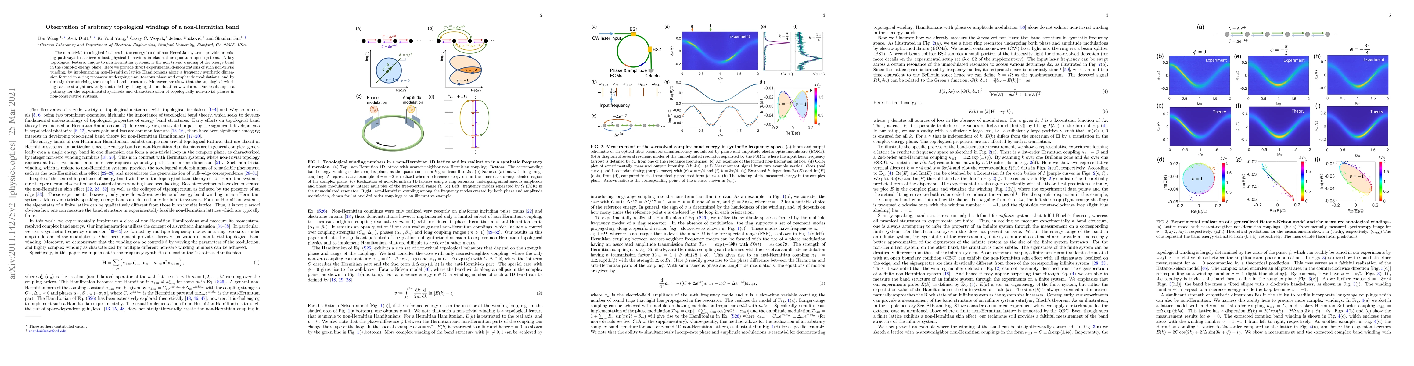 This paper demonstrates direct experimental observation of non-trivial topological windings in the energy band of non-Hermitian systems using a ring resonator with phase and amplitude modulations. The study shows that these windings can be controlled by altering modulation waveforms, paving the way for exploring topological phases in non-conservative systems.