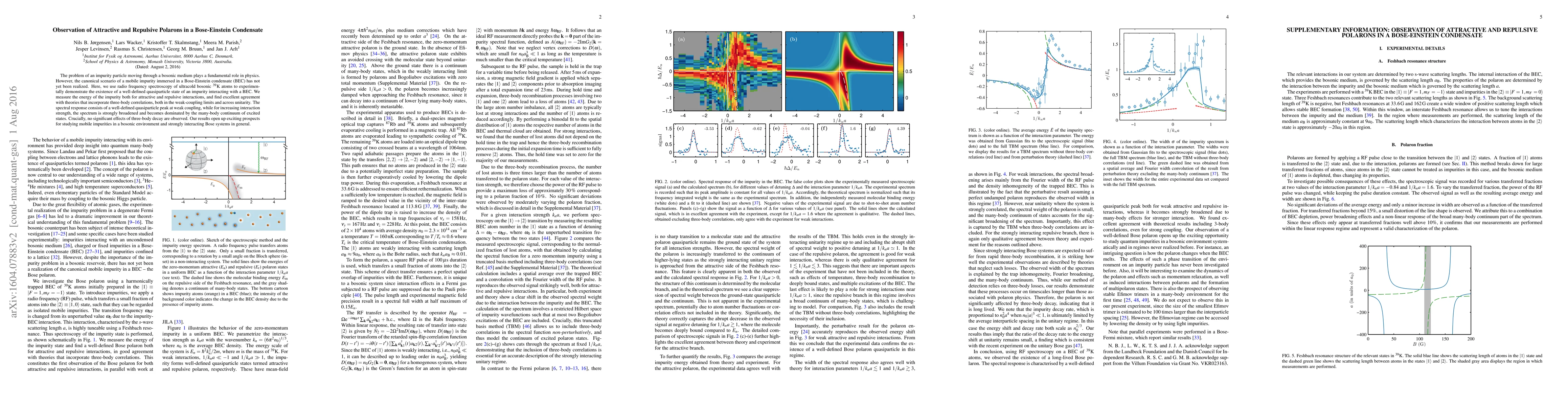 This paper experimentally demonstrates quasiparticle states of impurity particles in a Bose-Einstein condensate using ultracold bosonic atoms, observing both attractive and repulsive polarons. The findings align with theoretical models, showing a transition from quasiparticle peaks to a broadened spectrum with increased interaction strength.