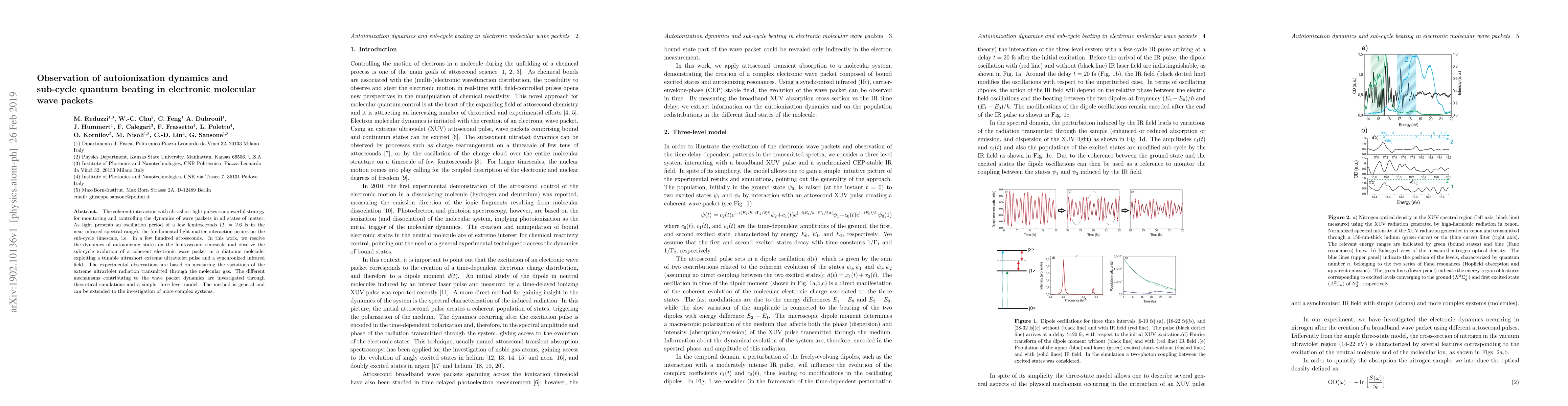 This paper investigates the femtosecond dynamics of autoionizing states in a diatomic molecule using ultrashort light pulses, observing sub-cycle quantum beating in the electronic wave packet. Experimental results are validated through theoretical simulations and a three-level model.