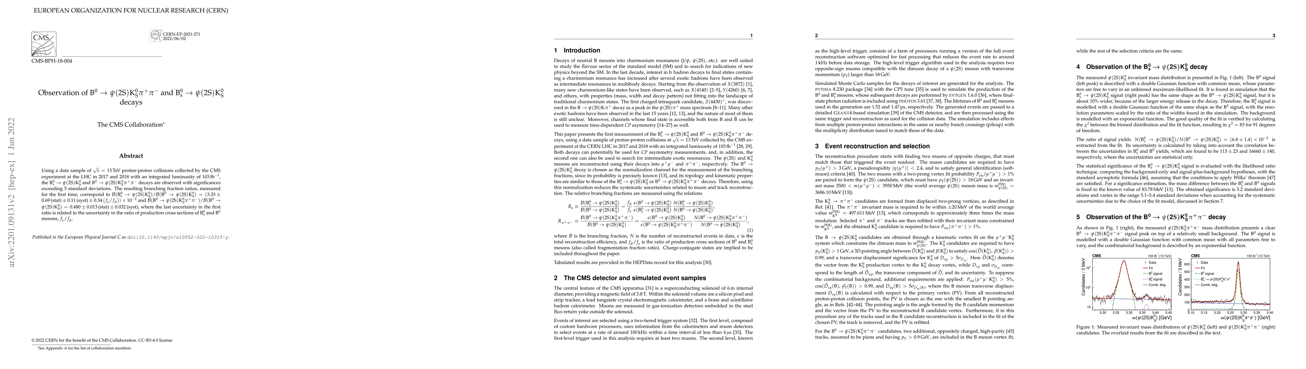 The CMS experiment at the LHC observes B$^0$ $\to$ $\psi$(2S)K$^0_\mathrm{S}$ and B$^0_\mathrm{S}$ $\to$ $\psi$(2S)K$^0_\mathrm{S}\pi^+\pi^-$ decays with high significance. The first branching fraction ratio measured is $\mathcal{B}$(B$^0_\mathrm{S}$ $\to$ $\psi$(2S)K$^0_\mathrm{S}$) / $\mathcal{B}$(B$^0$ $\to$ $\psi$(2S)K$^0_\mathrm{S}$) = (3.33 $\pm$ 0.69) $\times$ 10$^{-2}$.