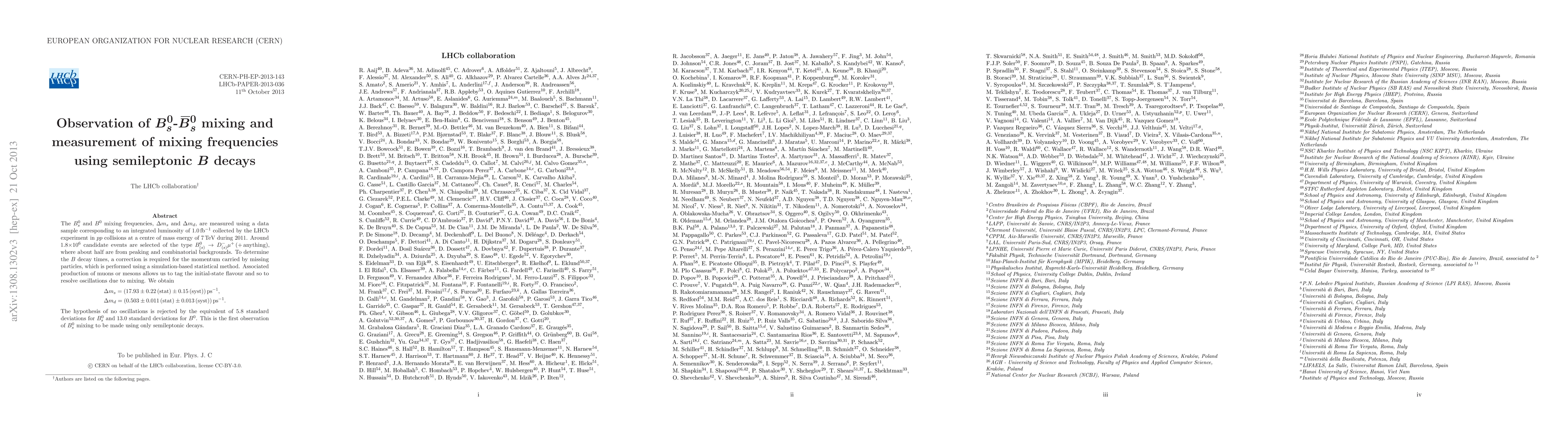 Researchers at LHCb experiment measure mixing frequencies of $B^0_s$ and $B^0$, observing evidence of $B^0_s$ mixing for the first time using semileptonic B decays, with results indicating significant mixing frequencies.