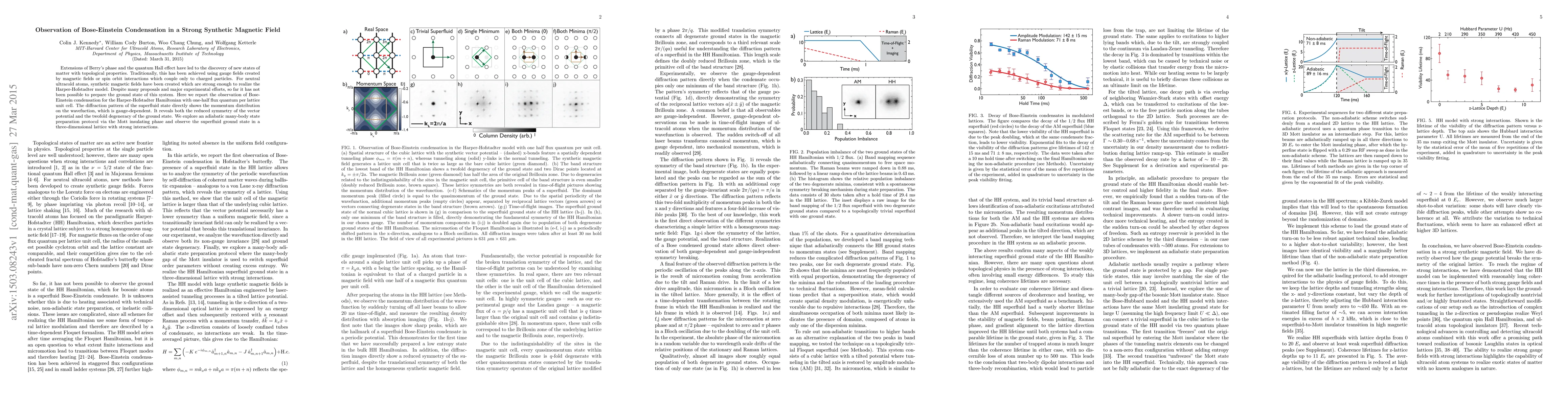 This work is novel as it demonstrates the realization of Bose-Einstein condensation in a strong synthetic magnetic field, directly observing the gauge potential's effect on symmetry breaking, and showcasing long coherence times in the presence of strong gauge fields and interactions, which opens new avenues for studying topological phases in ultracold atomic systems.