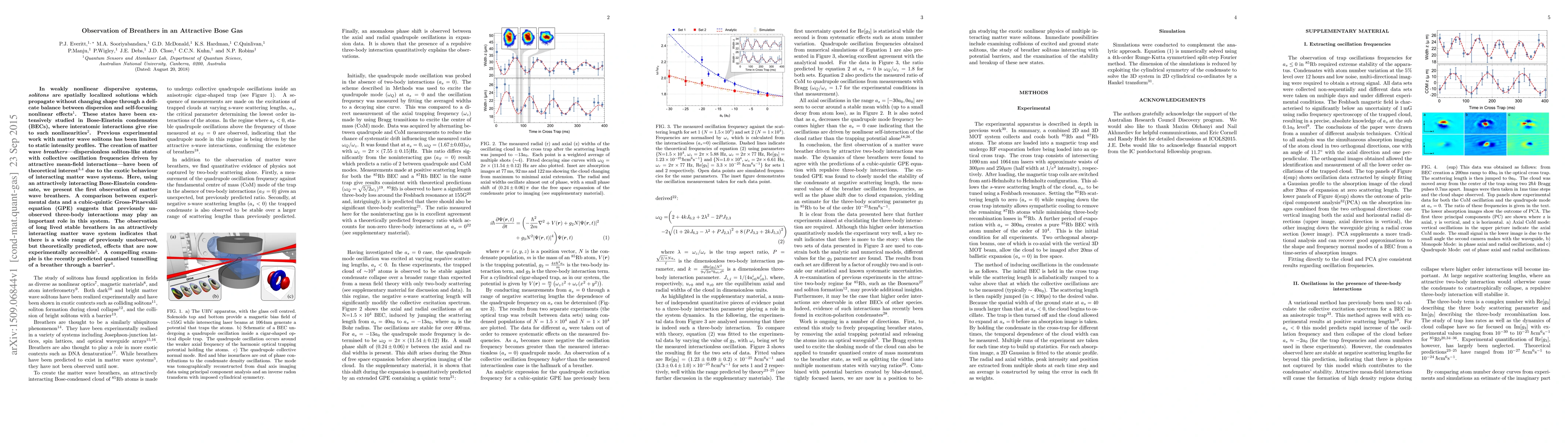 This paper reports the first experimental observation of matter wave breathers in an attractive Bose-Einstein condensate, revealing previously unobserved three-body interactions and indicating a broader range of theoretically predicted phenomena now accessible for study. The findings are supported by a comparison with a cubic-quintic Gross-Pitaevskii equation.