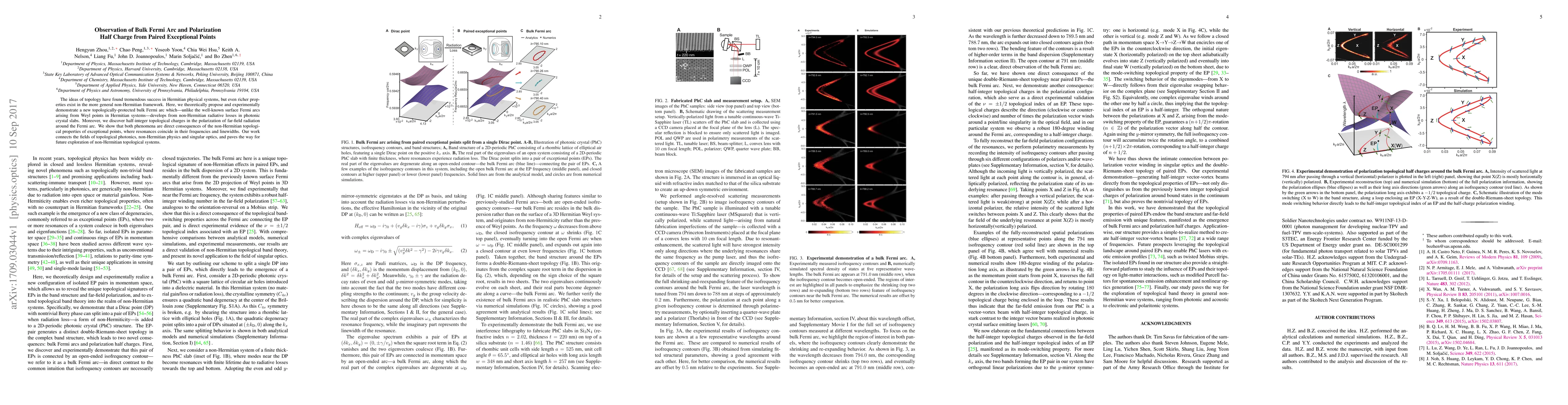 The ideas of topology have found tremendous success in Hermitian physical systems, but even richer properties exist in the more general non-Hermitian framework. Here, we theoretically propose and experimentally demonstrate a new topologically-protected bulk Fermi arc which---unlike the well-known surface Fermi arcs arising from Weyl points in Hermitian systems---develops from non-Hermitian radiative losses in photonic crystal slabs. Moreover, we discover half-integer topological charges in the polarization of far-field radiation around the Fermi arc. We show that both phenomena are direct consequences of the non-Hermitian topological properties of exceptional points, where resonances coincide in their frequencies and linewidths. Our work connects the fields of topological photonics, non-Hermitian physics and singular optics, and paves the way for future exploration of non-Hermitian topological systems.