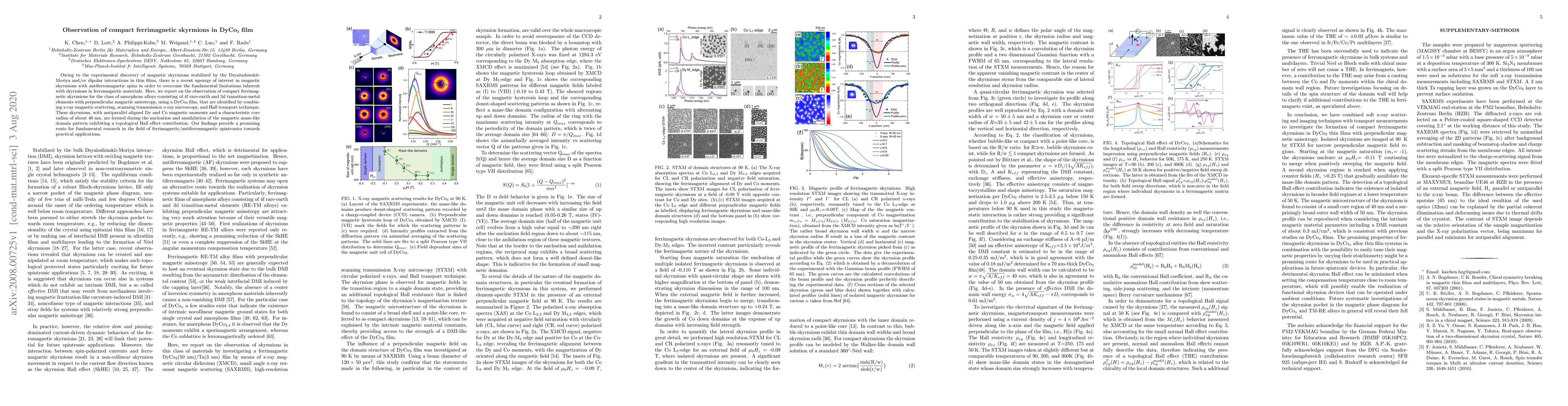 Researchers have observed compact ferrimagnetic skyrmions in a DyCo3 film using x-ray magnetic scattering, scanning transmission x-ray microscopy, and Hall transport technique, opening up new possibilities for spintronics applications.