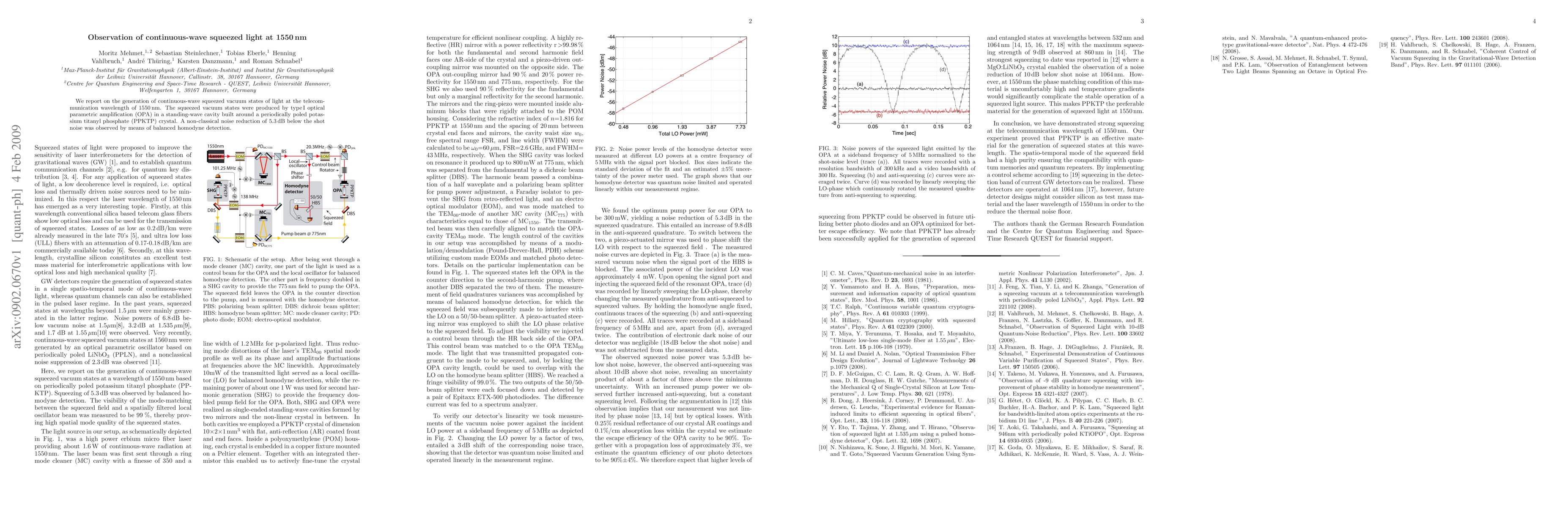This paper details the generation of continuous-wave squeezed vacuum states at 1550 nm using type I optical parametric amplification in a PPKTP crystal cavity, achieving a noise reduction of 5.3 dB below shot noise via balanced homodyne detection.
