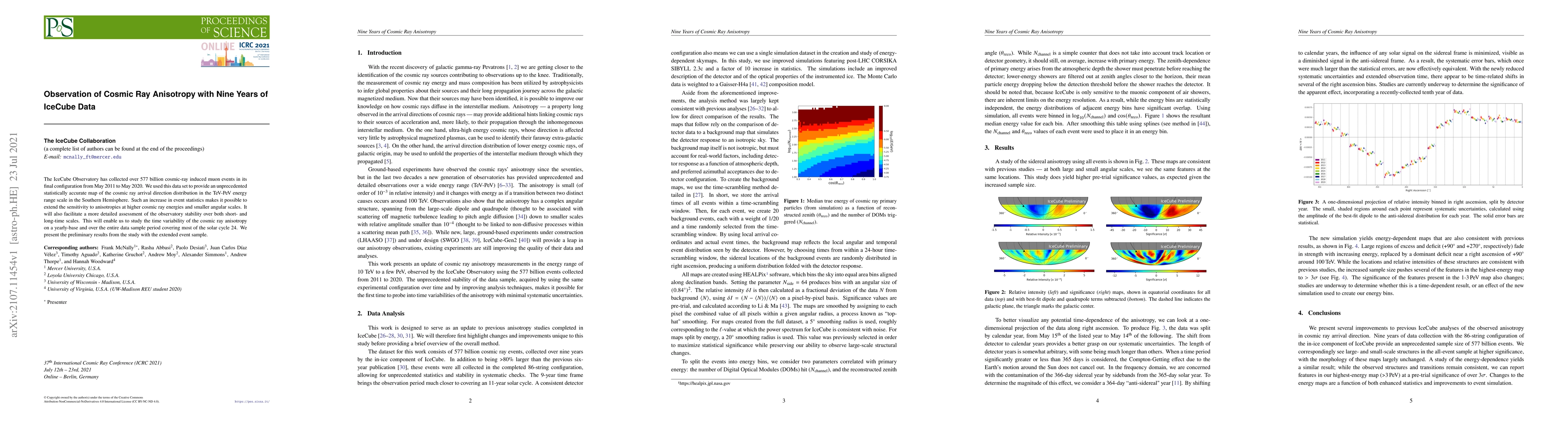 The IceCube Observatory's 9-year data set reveals unprecedented cosmic-ray arrival direction distribution maps in the Southern Hemisphere, enabling studies of time variability and anisotropies at higher energies.