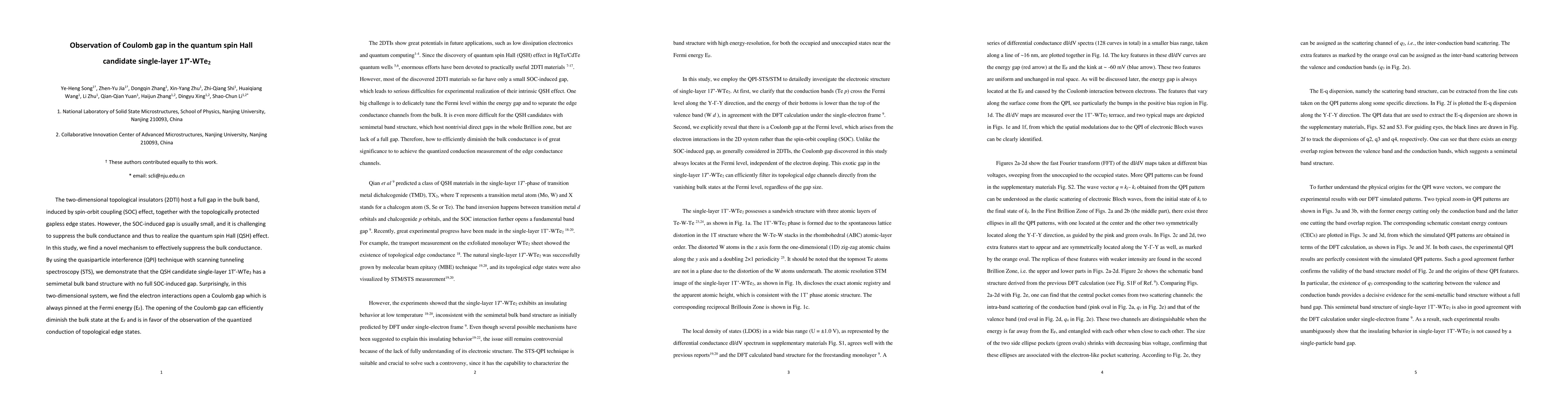 Researchers discovered a new mechanism that opens a Coulomb gap in single-layer 1T'-WTe$_2$, effectively suppressing bulk conductivity and enabling the observation of quantized conduction in topological edge states.
