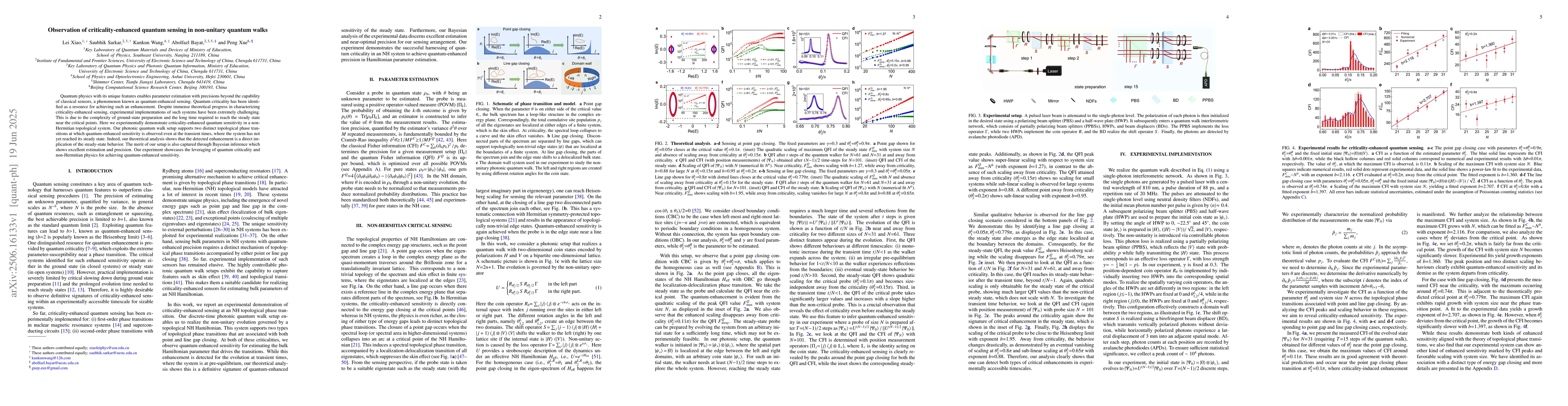 Quantum physics with its unique features enables parameter estimation with precisions beyond the capability of classical sensors, a phenomenon known as quantum-enhanced sensing. Quantum criticality has been identified as a resource for achieving such an enhancement. Despite immense theoretical progress in characterizing criticality-enhanced sensing, experimental implementations of such systems have been extremely challenging. This is due to the complexity of ground-state preparation and the long time required to reach the steady state near the critical points. Here we experimentally demonstrate criticality-enhanced quantum sensitivity in a non-Hermitian topological system. Our photonic quantum walk setup supports two distinct topological phase transitions at which quantum-enhanced sensitivity is observed even at the transient times, where the system has not yet reached its steady state. Indeed, our theoretical analysis shows that the detected enhancement is a direct implication of the steady-state behavior. The merit of our setup is also captured through Bayesian inference which shows excellent estimation and precision. Our experiment showcases the leveraging of quantum criticality and non-Hermitian physics for achieving quantum-enhanced sensitivity.