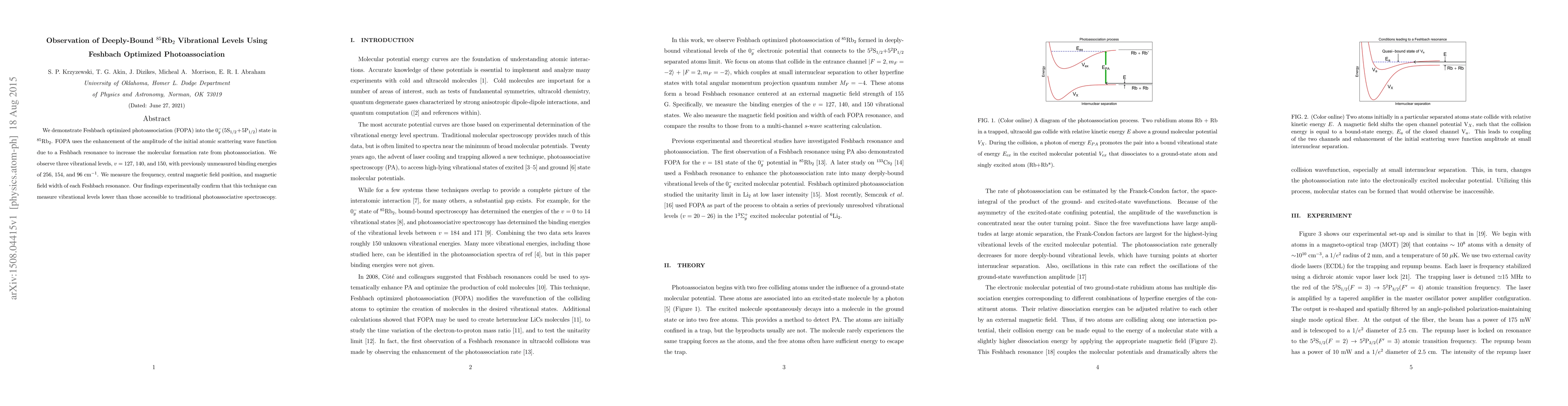 This paper demonstrates Feshbach optimized photoassociation for observing deeply-bound vibrational levels in $^{85}$Rb$_{2}$, revealing three unmeasured levels with binding energies of 256, 154, and 96 cm$^{-1}$. The technique enhances molecular formation rates, confirming its ability to access lower vibrational levels than traditional methods.