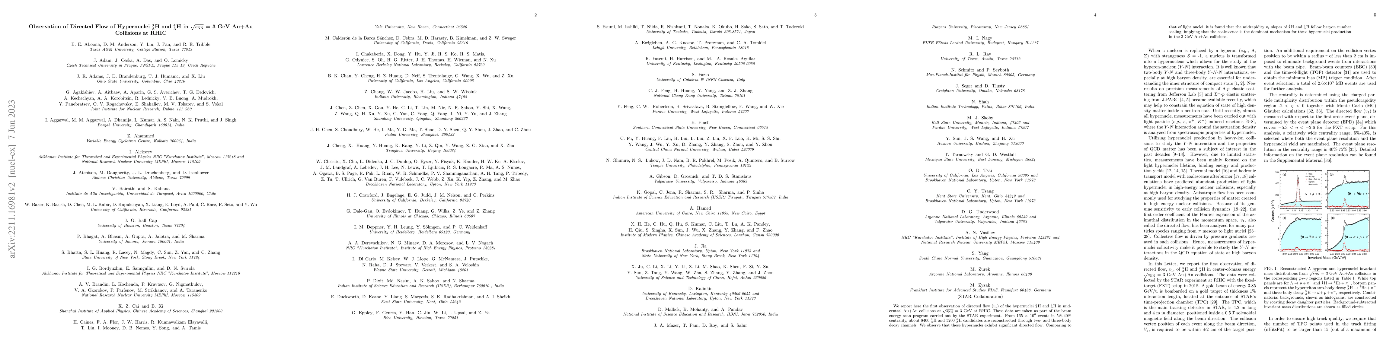 This paper reports the first observation of directed flow in hypernuclei $^3_{\Lambda}$H and $^4_{\Lambda}$H in mid-central Au+Au collisions at RHIC, indicating significant directed flow and baryon number scaling, suggesting coalescence as the dominant production mechanism.