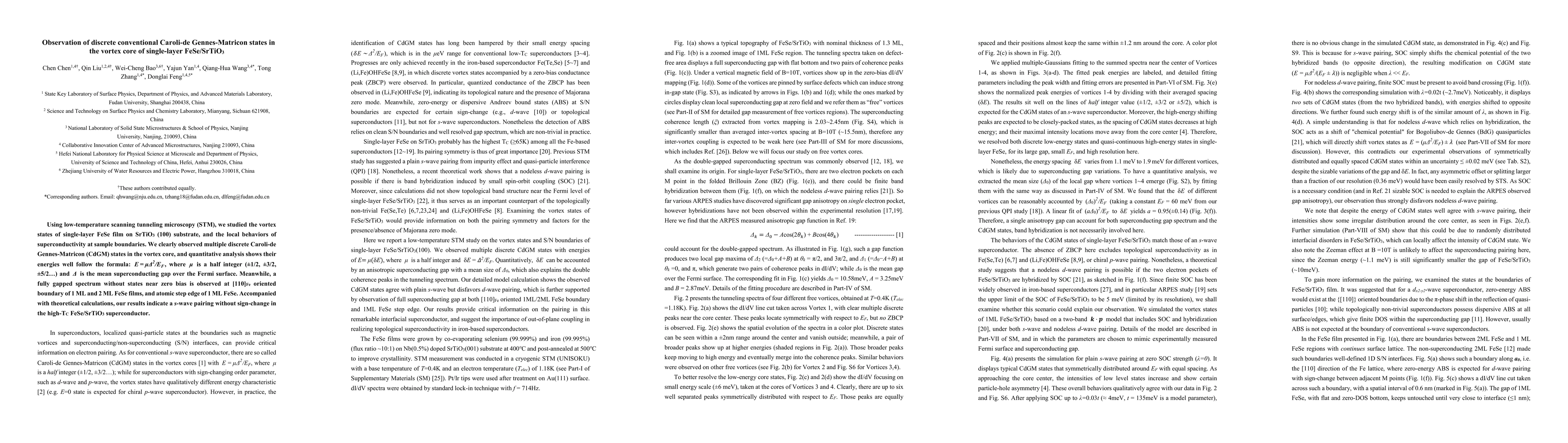 This paper reports the observation of discrete conventional Caroli-de Gennes-Matricon states in the vortex core of single-layer FeSe on SrTiO3 using STM, confirming s-wave pairing symmetry without sign change in the superconducting state. Additionally, it finds a fully gapped spectrum at the sample boundaries.