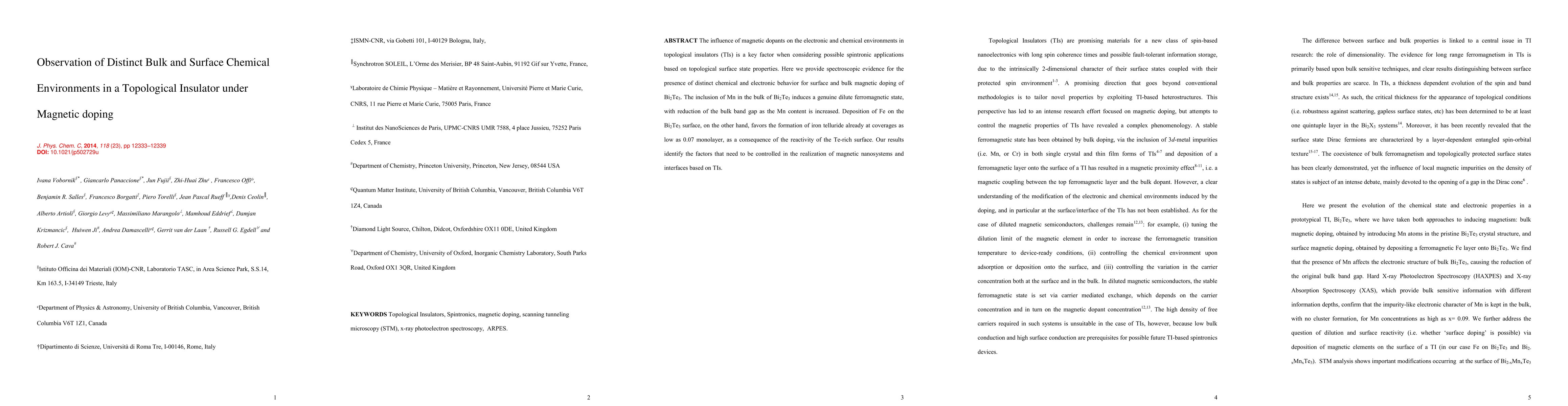 Researchers studied the effects of magnetic doping on topological insulators, finding distinct chemical environments for bulk and surface layers, with implications for spintronic applications.