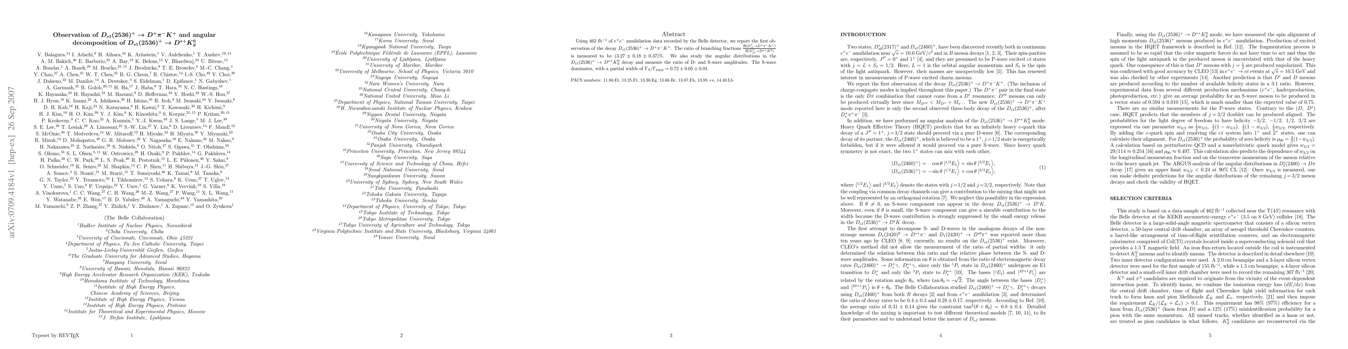 The Belle experiment reports the first observation of Ds1(2536)+ decaying into D+pi-K+, with a measured branching fraction ratio of 3.27%. Additionally, angular distributions in Ds1(2536)+ -> D*+K0S decay are analyzed, revealing S-wave dominance with a partial width of 0.72.