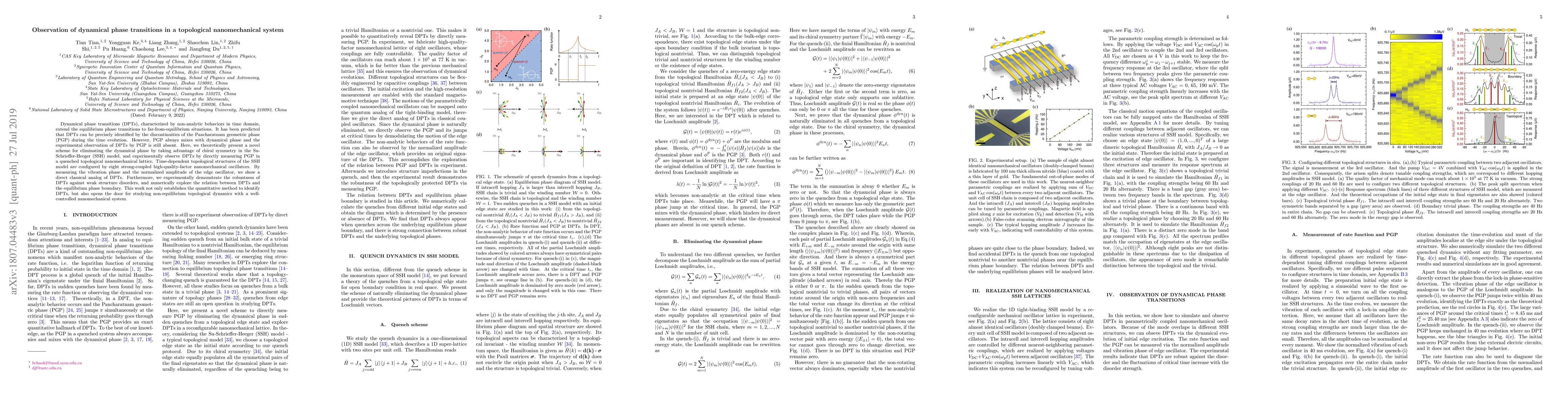 This paper presents a theoretical and experimental scheme for observing dynamical phase transitions (DPTs) in a topological nanomechanical system using the Pancharatnam geometric phase (PGP). By leveraging chiral symmetry in the Su-Schrieffer-Heeger model and high-quality nanomechanical oscillators, the authors demonstrate the robustness of DPTs against structural disorders and establish a method to identify DPTs.