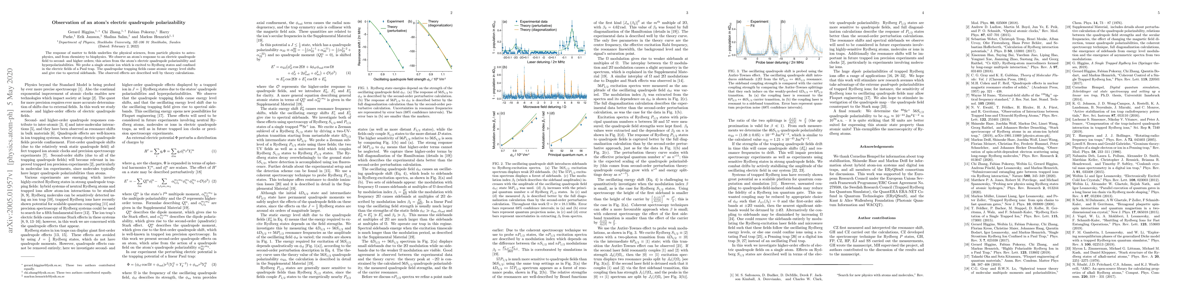 The response of matter to fields underlies the physical sciences, from particle physics to astrophysics, and from chemistry to biophysics. We observe an atom's response to an electric quadrupole field to second- and higher orders; this arises from the atom's electric quadrupole polarizability and hyperpolarizabilities. We probe a single atomic ion which is excited to Rydberg states and confined in the electric fields of a Paul trap. The quadrupolar trapping fields cause atomic energy level shifts and give rise to spectral sidebands. The observed effects are described well by theory calculations.