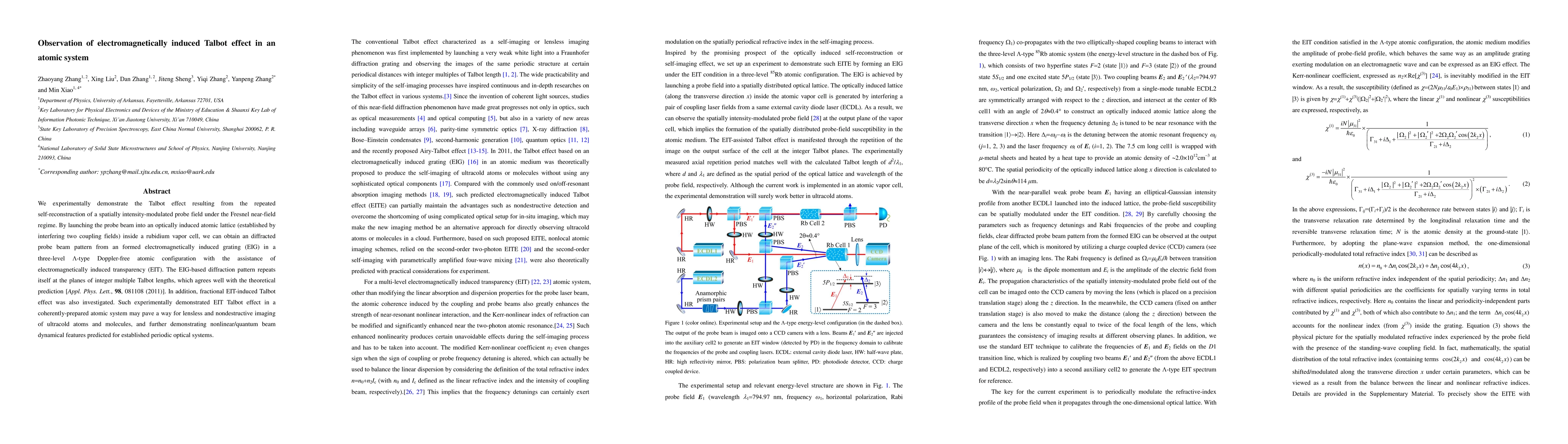 This paper experimentally observes the Talbot effect in an atomic system using electromagnetically induced transparency (EIT) within a rubidium vapor cell. The study demonstrates self-reconstruction of a spatially modulated probe beam in an optically induced atomic lattice, achieving diffraction patterns that repeat at integer multiple Talbot lengths, confirming theoretical predictions.