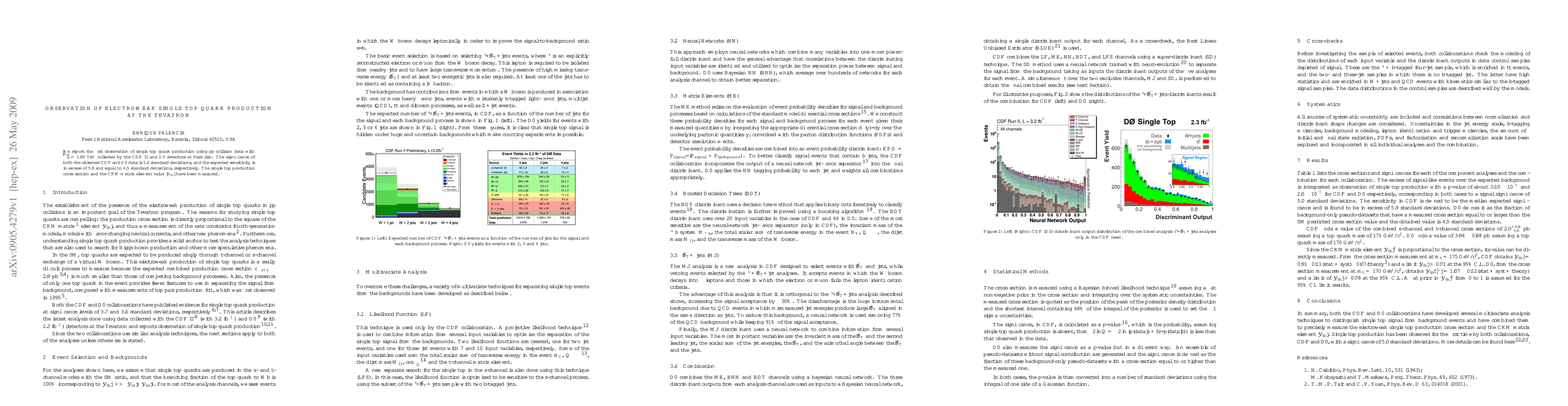 This research paper details the first observation of single top quark production using proton-antiproton collisions at Fermilab's Tevatron, with a significance of 5.0 standard deviations for both CDF and D0 data. The study also measures the single top production cross section and determines the value of the CKM matrix element |V_{tb}|.