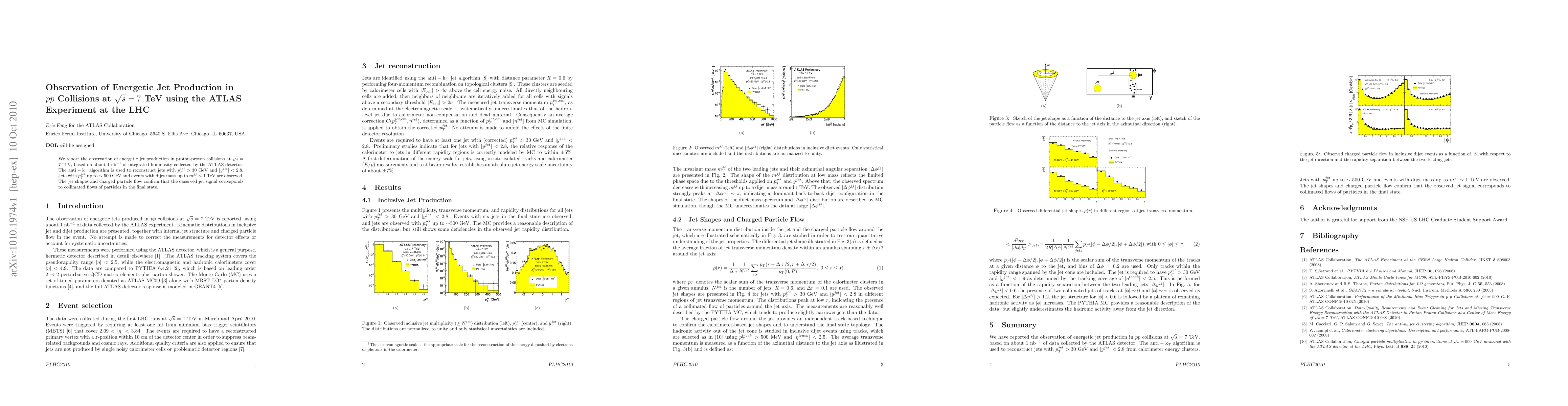 This paper reports the observation of energetic jet production in proton-proton collisions at 7 TeV using the ATLAS detector, with jets reconstructed via the anti-kT algorithm showing pT up to ~500 GeV. The findings confirm the presence of collimated particle flows in the final state.