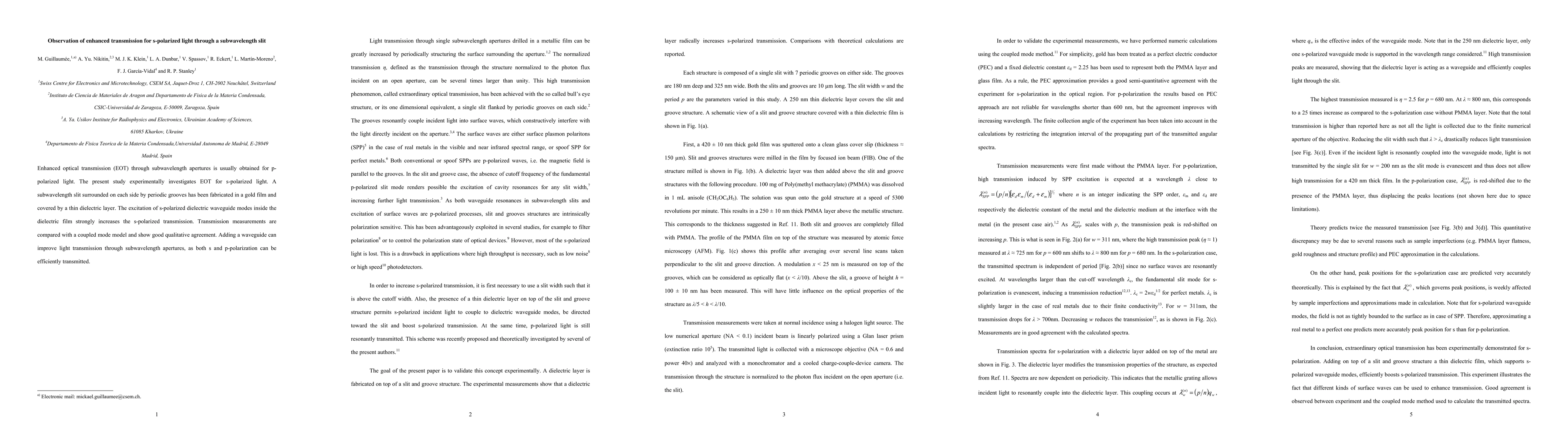 This study experimentally investigates enhanced optical transmission (EOT) for s-polarized light through a subwavelength slit surrounded by periodic grooves in a gold film. The excitation of s-polarized dielectric waveguide modes significantly increases s-polarized transmission, with measurements aligning well with a coupled mode model.
