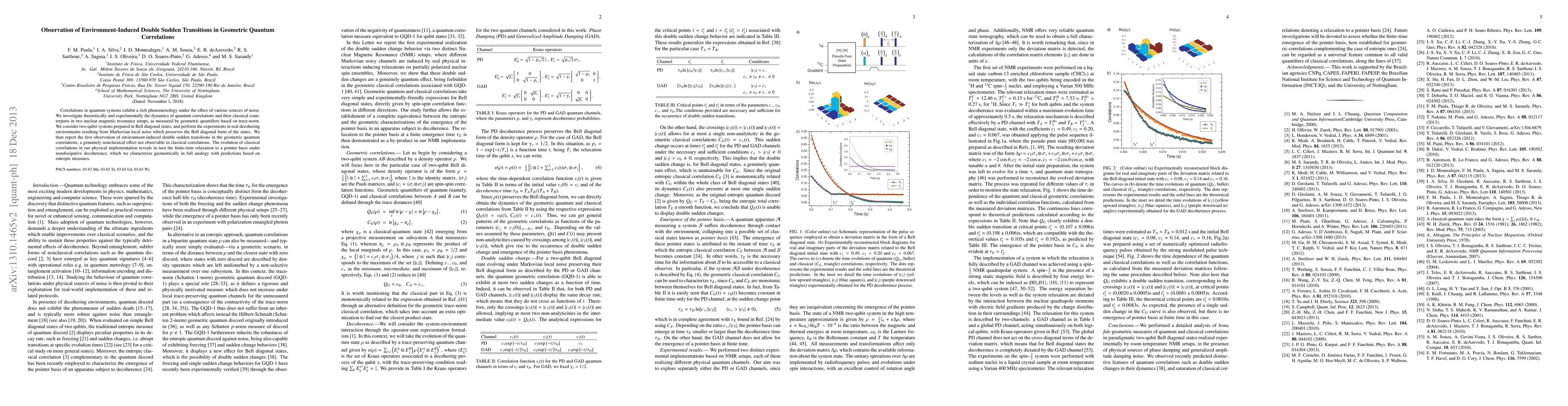 Researchers observed environment-induced double sudden transitions in geometric quantum correlations for the first time, revealing a genuinely nonclassical effect not seen in classical correlations. The findings provide insight into the evolution of classical correlations under decoherence.