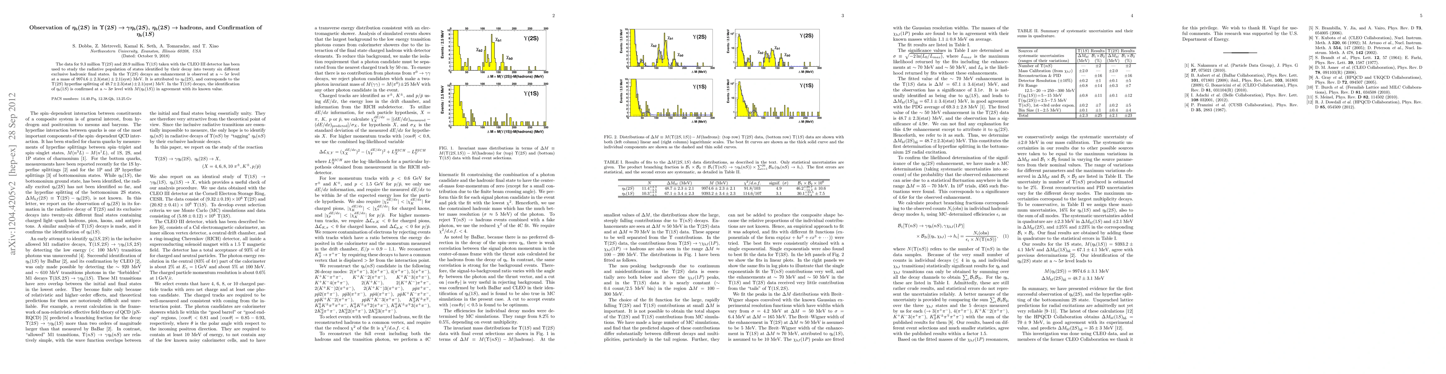 The data for 9.3 million Upsilon(2S) and 20.9 million Upsilon(1S) taken with the CLEO III detector has been used to study the radiative population of states identified by their decay into twenty six different exclusive hadronic final states. In the Upsilon(2S) decays an enhancement is observed at a ~5 sigma level at a mass of 9974.6+-2.3(stat)+-2.1(syst) MeV. It is attributed to eta_b(2S), and corresponds to the Upsilon(2S) hyperfine splitting of 48.7+-2.3(stat)+-2.1(syst) MeV. In the Upsilon(1S) decays, the identification of eta_b(1S) is confirmed at a ~3 sigma level with M(eta_b(1S)) in agreement with its known value.