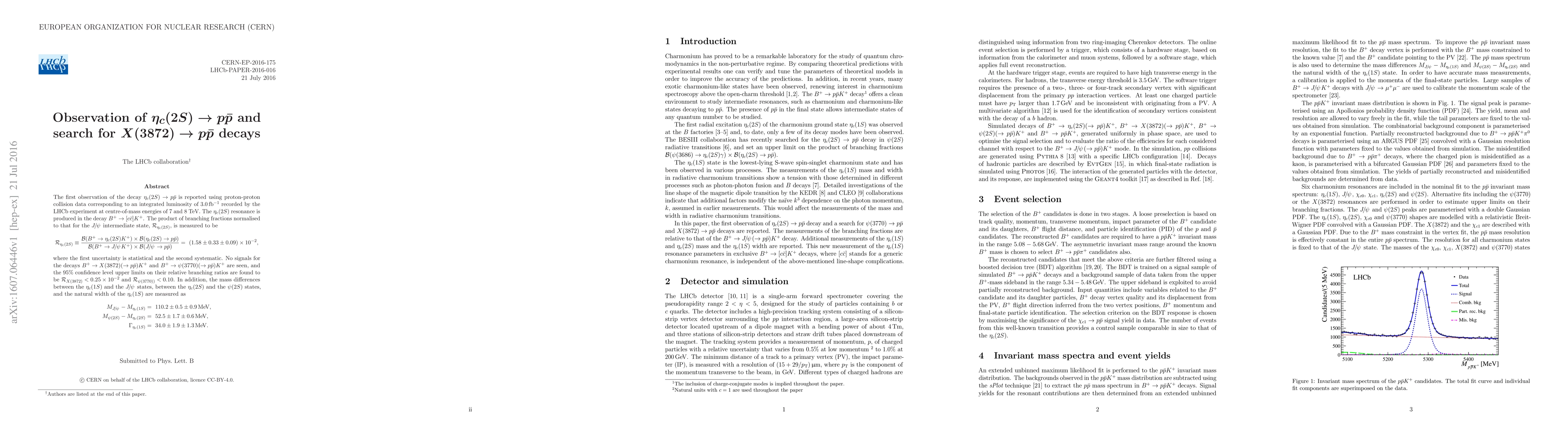 Researchers at LHCb experiment observed the decay of $ au_{c}(2S)$ to proton-antiproton pairs for the first time and set limits on decays involving the $X(3872)$ resonance.