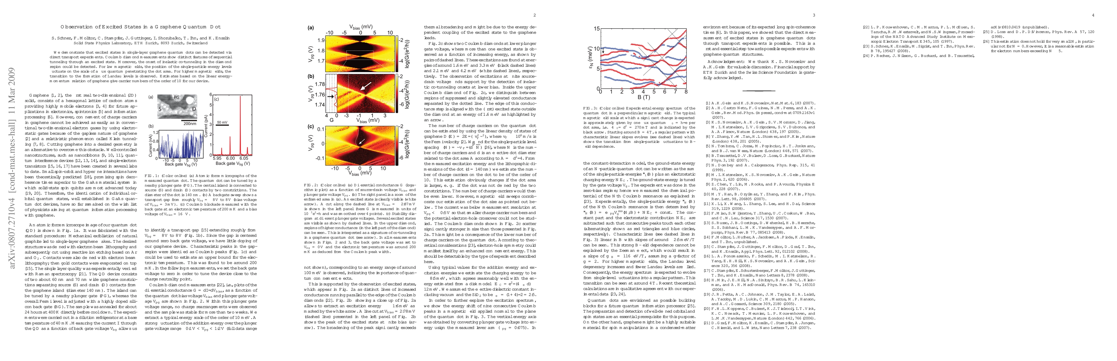 We demonstrate that excited states in single-layer graphene quantum dots can be detected via direct transport experiments. Coulomb diamond measurements show distinct features of sequential tunneling through an excited state. Moreover, the onset of inelastic cotunneling in the diamond region could be detected. For low magnetic fields, the positions of the single-particle energy levels fluctuate on the scale of a flux quantum penetrating the dot area. For higher magnetic fields, the transition to the formation of Landau levels is observed. Estimates based on the linear energy-momentum relation of graphene give carrier numbers of the order of 10 for our device.