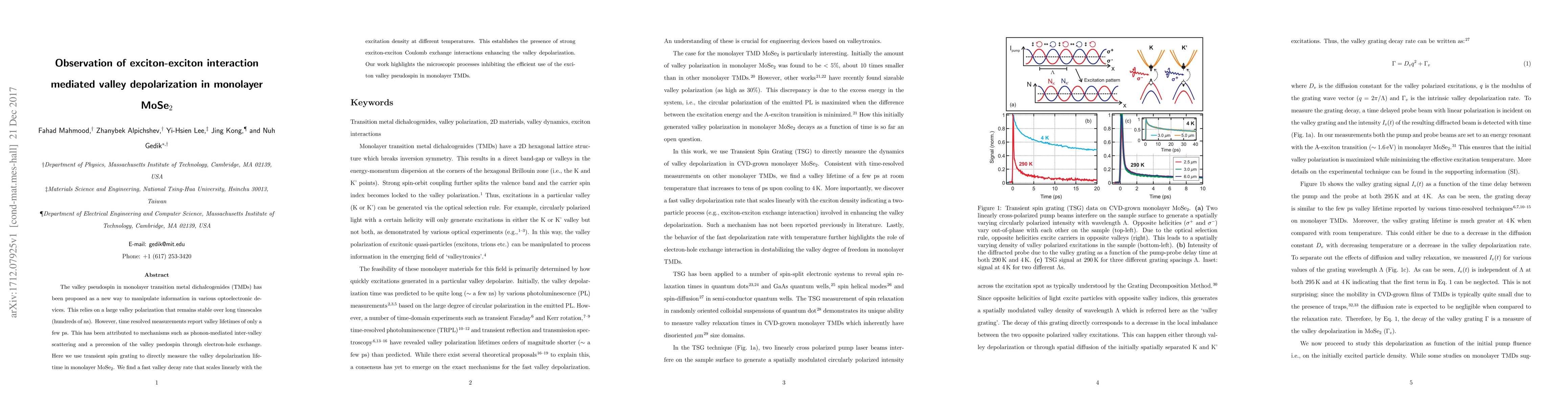 This study investigates valley depolarization in monolayer MoSe$_2$ using transient spin grating, revealing a fast decay rate due to exciton-exciton Coulomb exchange interactions. This interaction scales linearly with excitation density, highlighting mechanisms that hinder the effective use of valley pseudospin in optoelectronic devices.