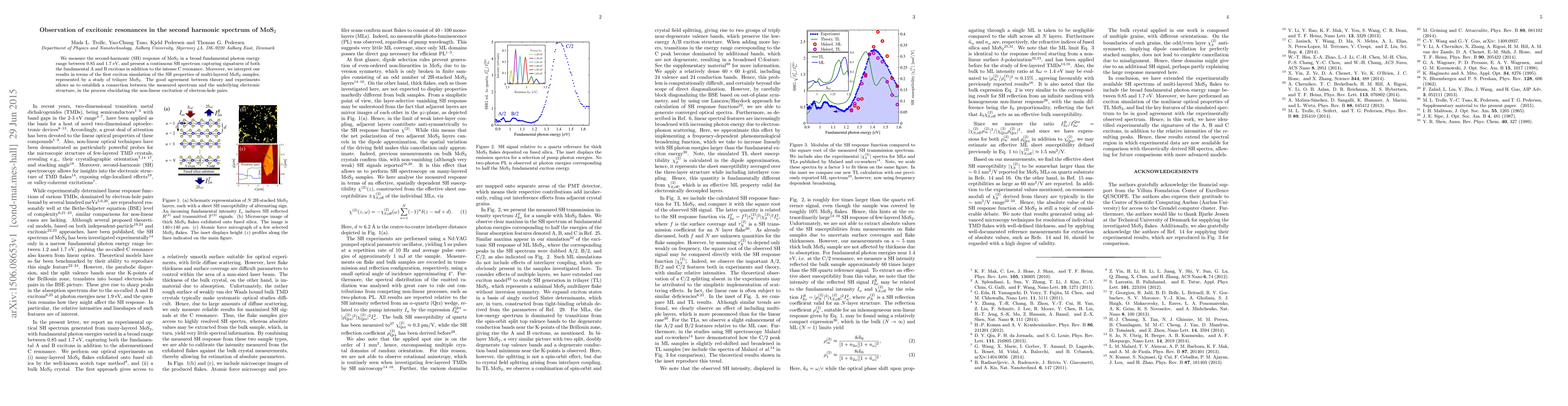 This paper reports on the second-harmonic generation (SHG) spectrum of MoS$_2$, revealing signatures of fundamental A and B excitons and the C resonance. Theoretical simulations of trilayer MoS$_2$ corroborate experimental findings, providing insight into the non-linear excitation of excitonic states in the material.