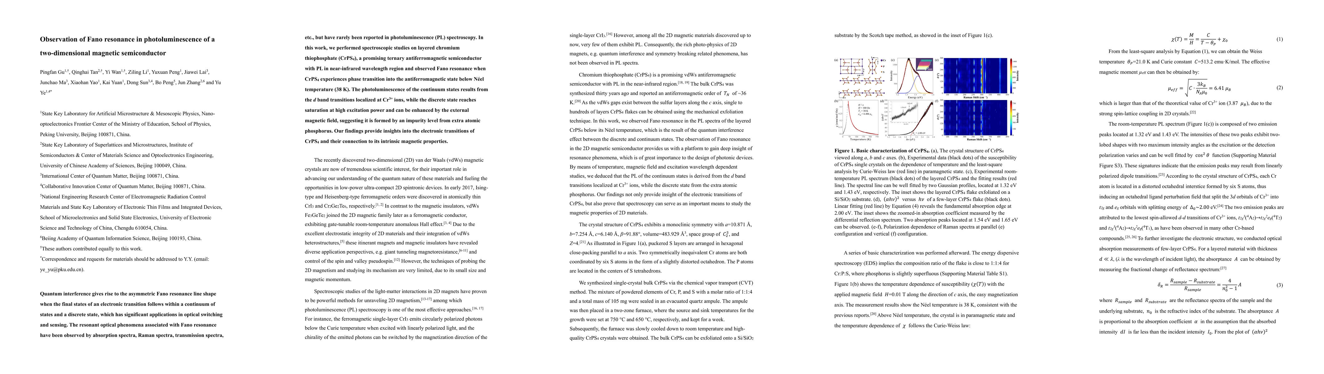 This study observes Fano resonance in the photoluminescence of a two-dimensional magnetic semiconductor, CrPS4, revealing quantum interference effects during electronic transitions. The findings highlight the material's potential for optical applications and provide insights into the relationship between its electronic transitions and magnetic properties.