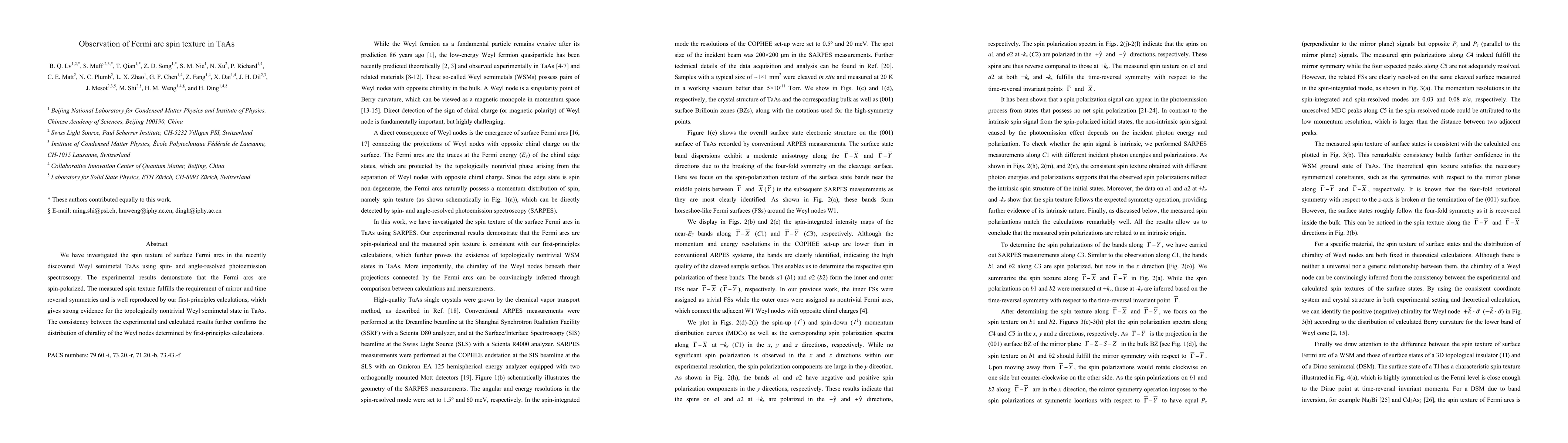 This study uses spin- and angle-resolved photoemission spectroscopy to observe spin-polarized Fermi arcs in TaAs, a Weyl semimetal, confirming the topologically nontrivial state and validating the chirality distribution of Weyl nodes predicted by first-principles calculations.