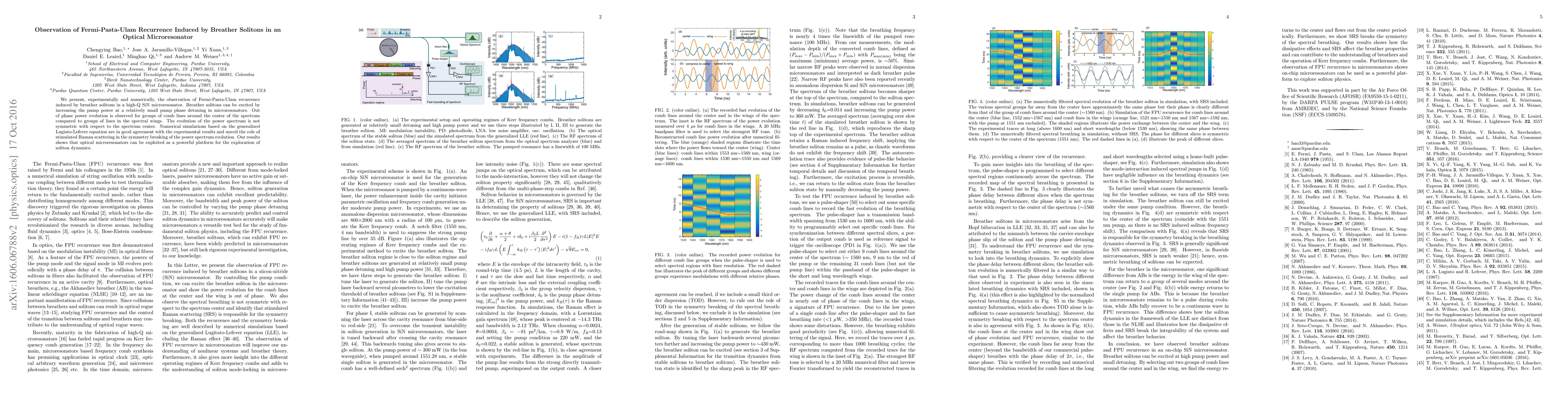 This paper experimentally and numerically observes Fermi-Pasta-Ulam recurrence in a SiN microresonator, induced by breather solitons, revealing asymmetric spectral evolution and stimulated Raman scattering's role in symmetry breaking, demonstrating optical microresonators' potential for soliton dynamics study.