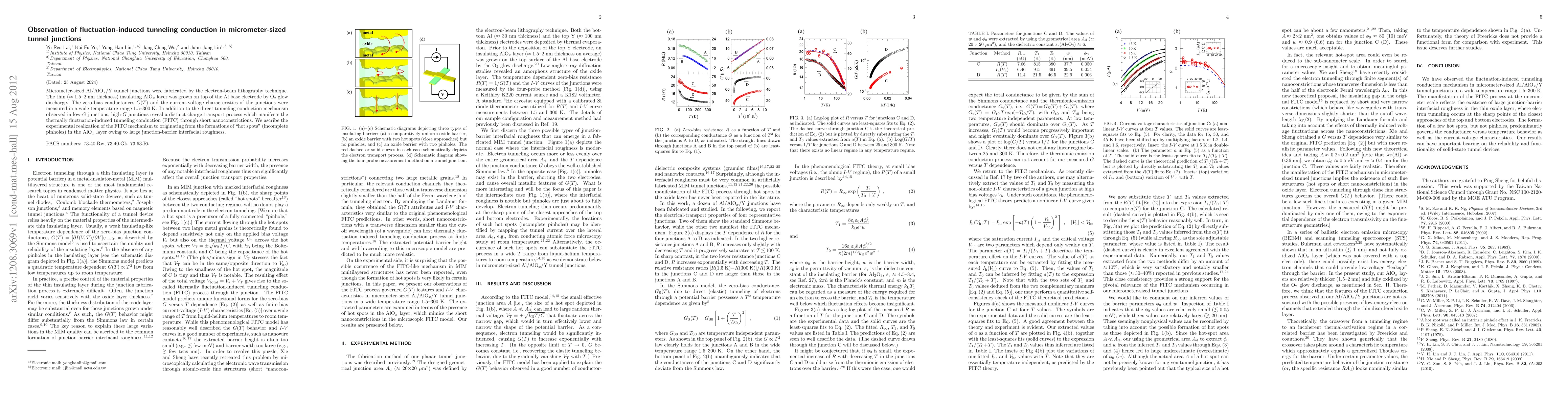This paper investigates micrometer-sized Al/AlO$_x$/Y tunnel junctions, revealing a distinct charge transport process termed thermally fluctuation-induced tunneling conduction (FITC) due to "hot spots" from interfacial roughness in the AlO$_x$ layer. FITC is observed in high-conductance junctions alongside direct tunneling.
