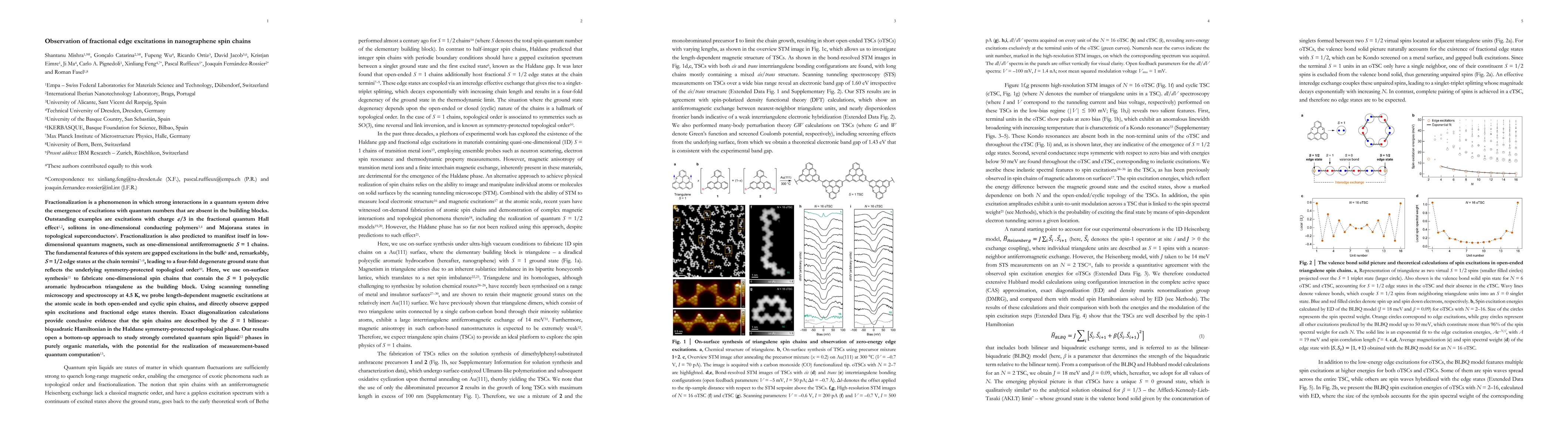 This paper reports the observation of fractional edge excitations in nanographene spin chains synthesized using on-surface synthesis. The study reveals gapped spin excitations and S = 1/2 edge states, confirming the existence of symmetry-protected topological order in these organic materials.