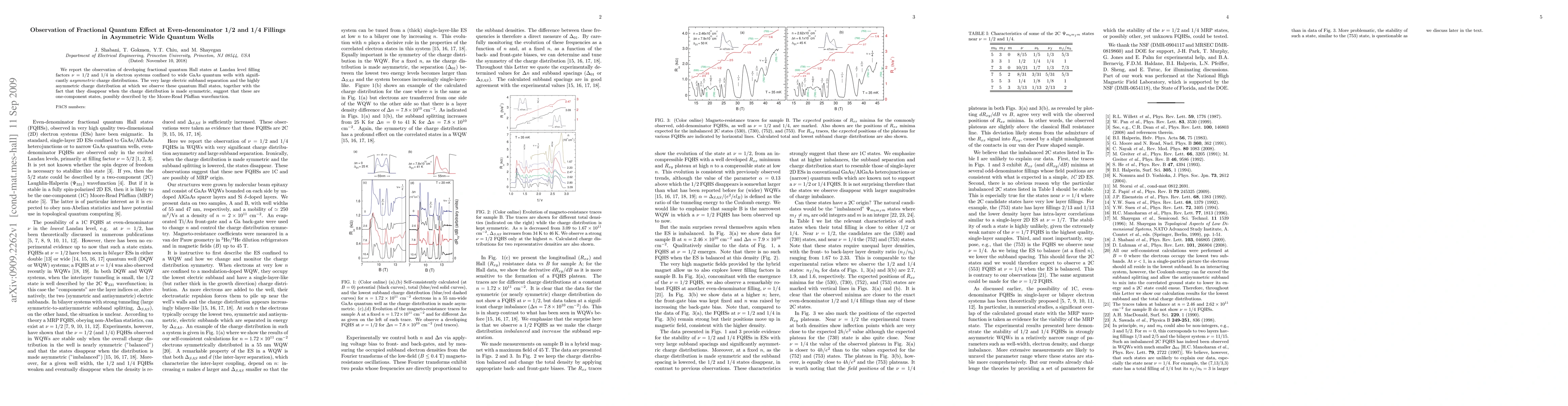 This study observes fractional quantum Hall effect at $\nu = 1/2$ and $\nu = 1/4$ in asymmetric wide GaAs quantum wells, indicating one-component states potentially described by the Moore-Read Pfaffian wavefunction, which vanish upon symmetry restoration.