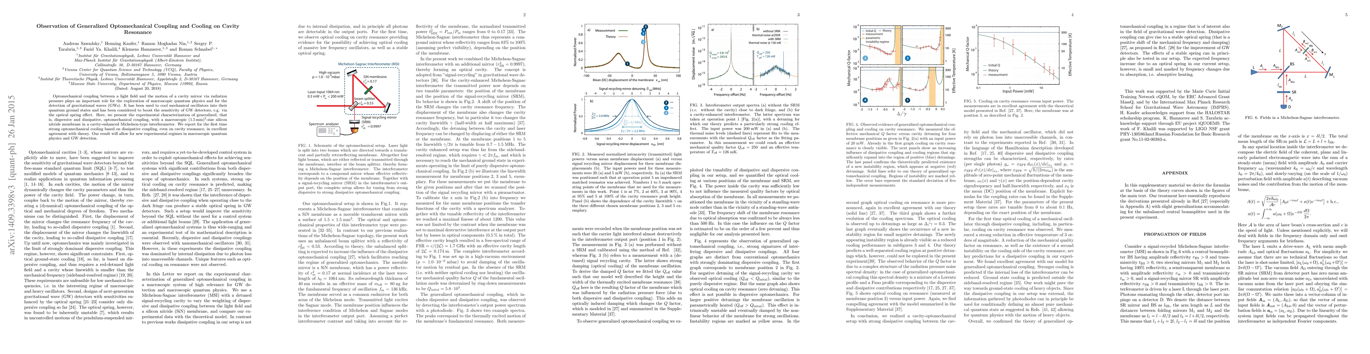 This paper reports the experimental observation of generalized optomechanical coupling, including both dispersive and dissipative effects, in a silicon nitride membrane within a cavity-enhanced interferometer. It demonstrates strong optomechanical cooling on cavity resonance, paving the way for new experimental regimes in macroscopic quantum physics and gravitational wave detection.