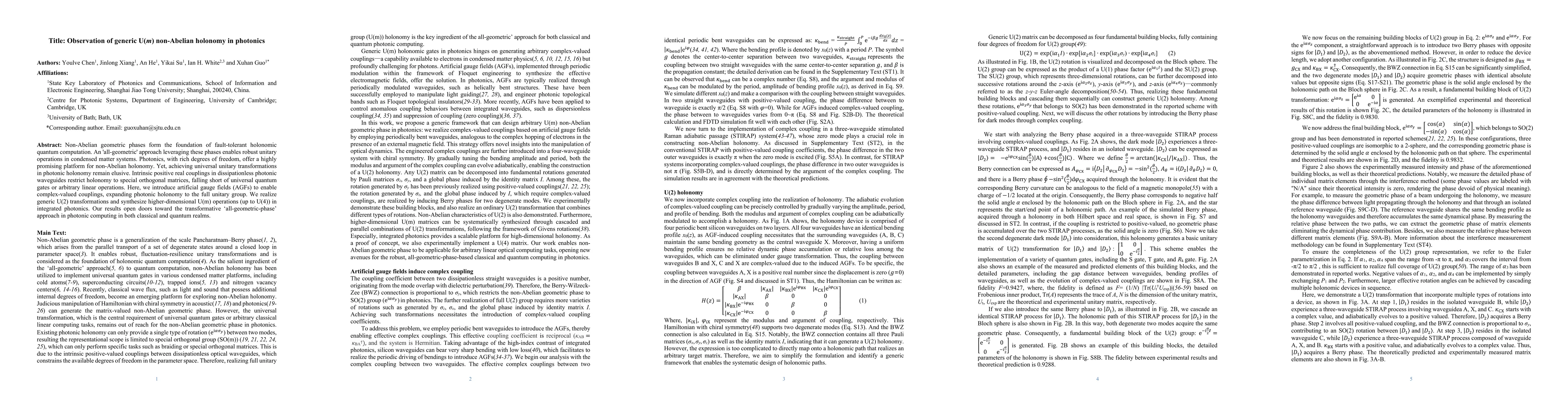 This work distinguishes itself by resolving the key issue of non-Abelian geometric phase in photonics, constructing generic unitary groups for universal quantum gates or arbitrary classical linear computing tasks in photonics, which was previously elusive.