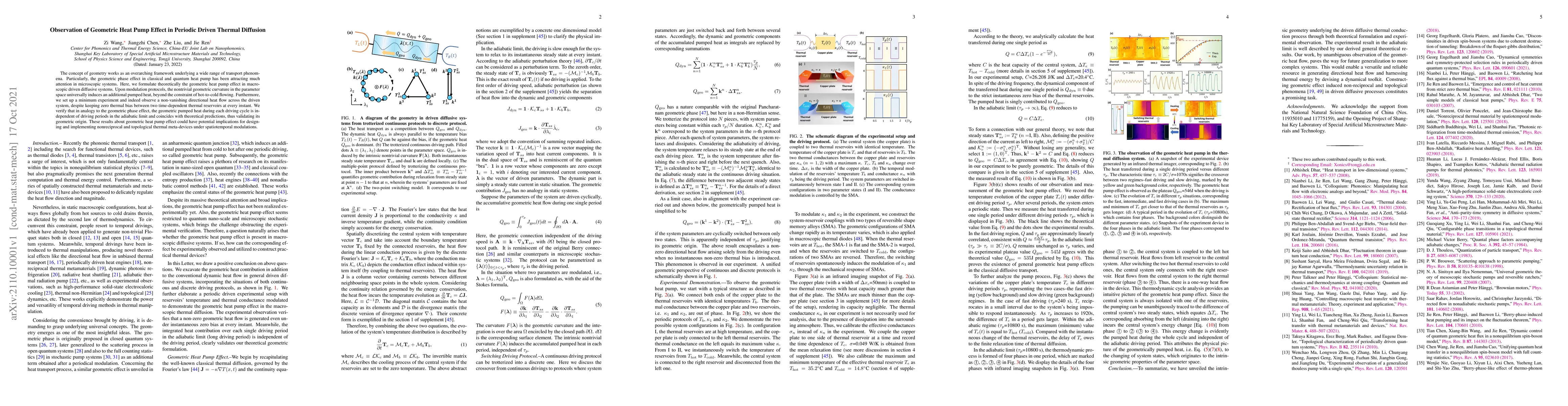 This paper theoretically and experimentally demonstrates the geometric heat pump effect in driven periodic thermal diffusion, showing that geometric curvature in parameter space induces additional heat flow independent of thermal bias. The findings validate the geometric origin of this effect and suggest potential applications in designing nonreciprocal thermal devices.