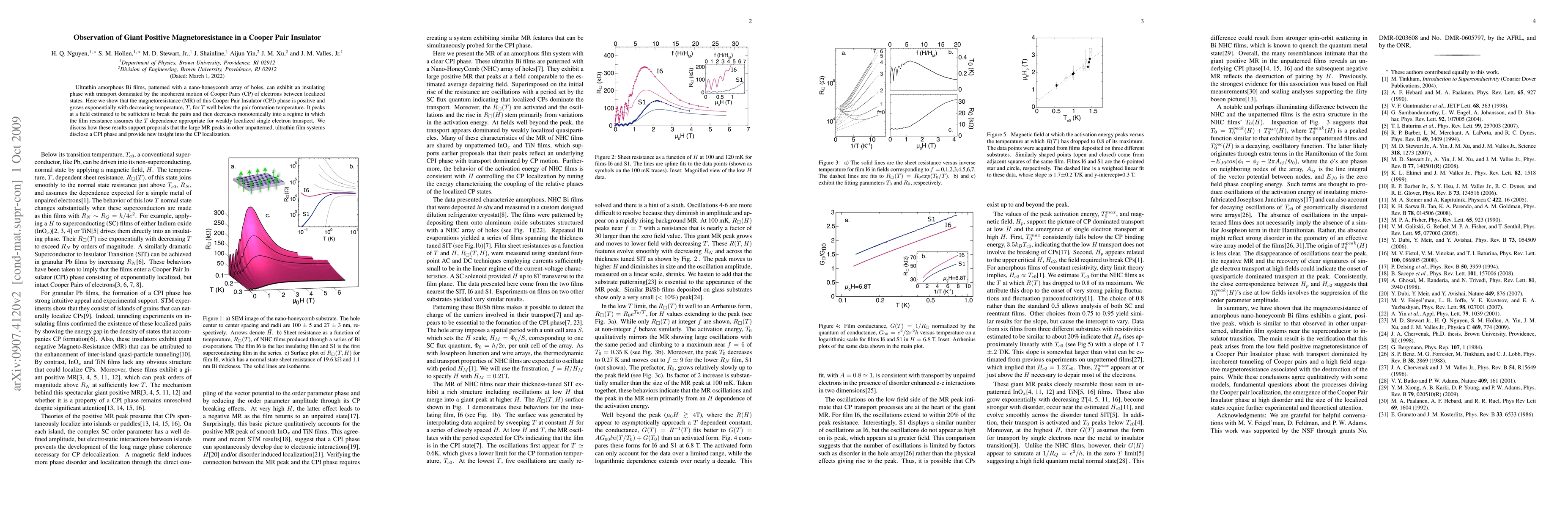 Researchers observed a positive giant magnetoresistance in ultrathin amorphous Bi films, which peaks at a field sufficient to break Cooper pair bonds and is consistent with the presence of a Cooper Pair Insulator phase.