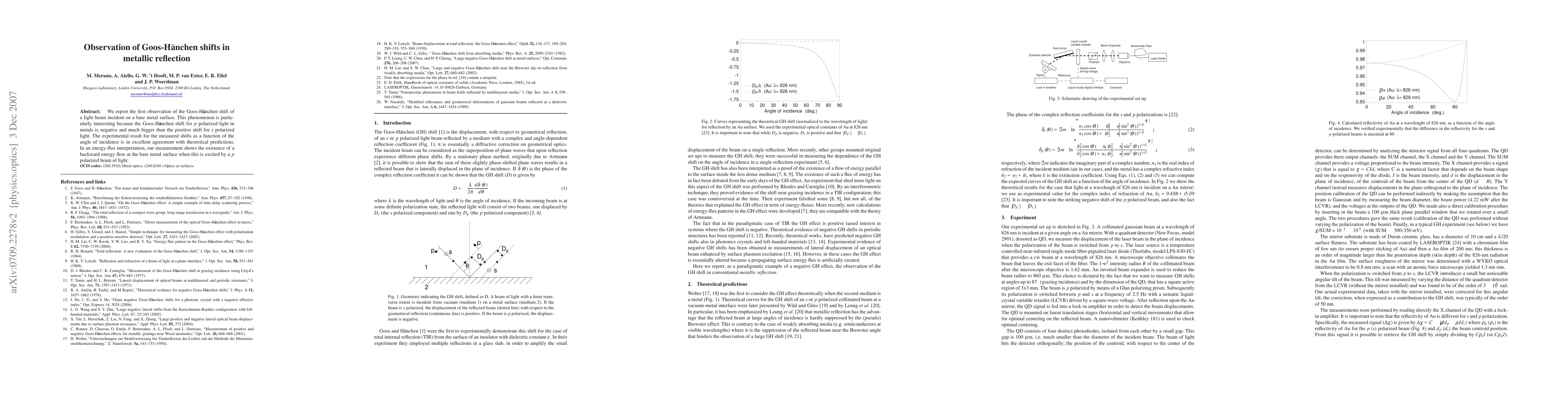 Summary: The first observation of the Goos-Hänchen shift for light incident on a metal surface reveals a significantly larger negative shift for $p$ polarized light compared to $s$ polarized light, matching theoretical predictions and indicating a backward energy flow at the metal surface.
