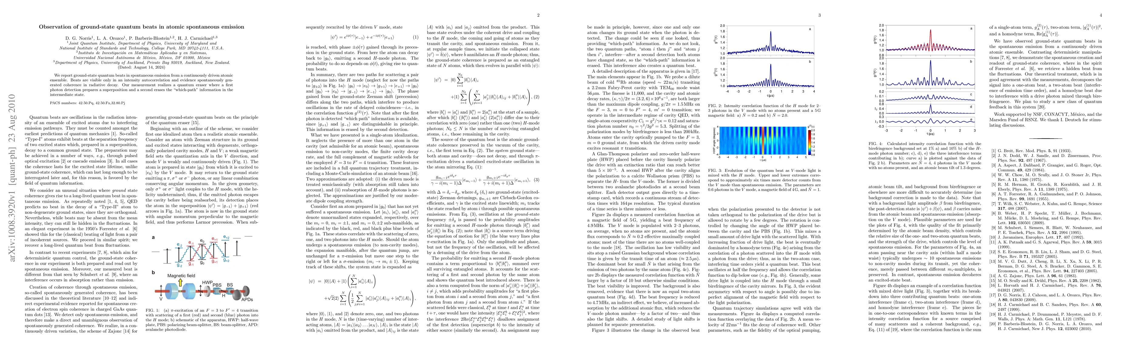 This paper observes ground-state quantum beats in atomic spontaneous emission, revealing coherence in radiative decay through intensity autocorrelation. The study implements a quantum eraser mechanism where detecting a first photon creates a superposition, and a second photon erases "which-path" information.