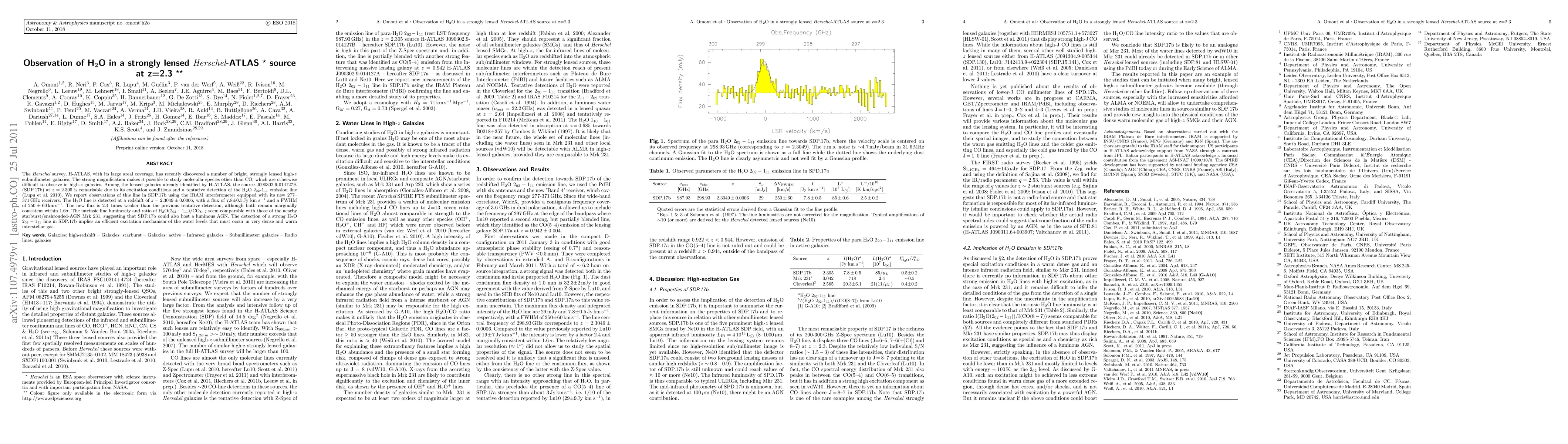 This paper reports the detection of the H2O 202-111 emission line in the strongly lensed Herschel-ATLAS source SDP.17b at z=2.3, suggesting the presence of a luminous AGN and efficient excitation mechanisms in dense, warm interstellar gas. The new flux is 2.4 times weaker than a previous tentative detection, but both remain marginally consistent.