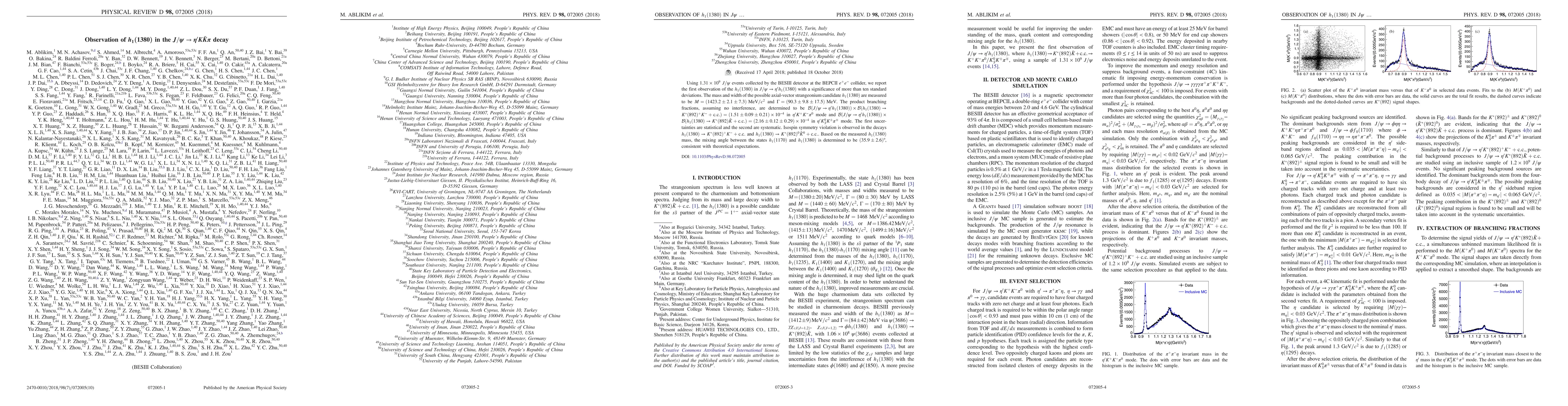 The BESIII experiment observed the $h_1(1380)$ particle in $J/\psi \to \eta^{\prime} K\bar K \pi$ decay with high significance, measuring its mass and width, and determining its branching fractions. Isospin symmetry violation is noted in its decay modes.