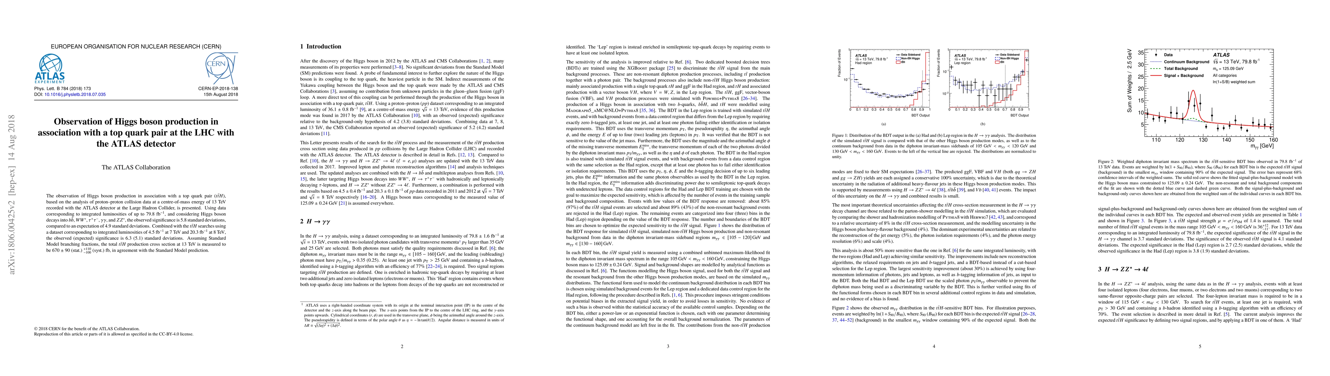 The ATLAS collaboration reports the observation of Higgs boson production in association with a top quark pair ($t\bar{t}H$) at the LHC, achieving a 5.8 standard deviation significance. The measurement aligns with Standard Model predictions and provides a total cross section of 670 $\pm$ 90 fb.