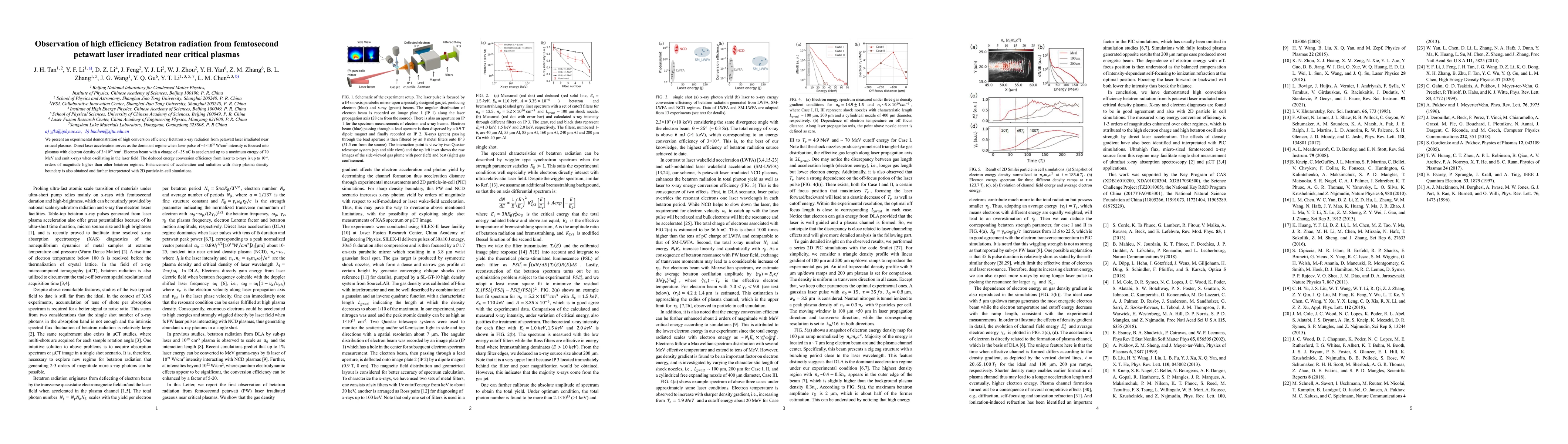 The study presents an experimental demonstration of high-efficiency Betatron x-ray radiation from petawatt laser-plasma interactions, along with supporting 2D particle-in-cell simulations.